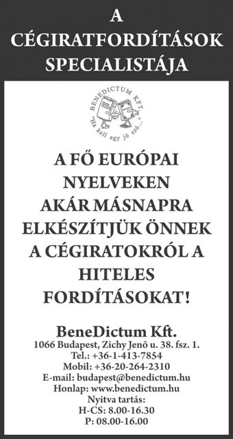 Ügyvédek Lapja A Magyar Ügyvédi Kamara hivatalos lapja Megjelenik: kéthavonta Példányszám: 15 300 Főszerkesztő: Dr. Bánáti János Főmunkatárs: Dr. Hidasi Gábor Rovatvezető: Dr. Bálint Szilvia, Dr. Becker Tibor Munkatárs: Dr. Kaszás Beáta Aszerkesztőségcíme: Magyar Ügyvédi Kamara, 1054 Budapest, Szemere u. 8. Kiadja: PanPress Kft. Felelőskiadó: a Panpress Kft. vezetője. Lapigazgató: Komlós Attila Szerkesztőség: ugyvedeklapja@panpress.hu Telefon: (+36-1) 6333366 Fax: (+36-1) 700-1987 Lapnyilvántartásba vételi szám: 163/0594-1/2007 (Kulturális Örökségvédelmi Hivatal) ISSN 1216-9102 Hirdetésfeladás: www.panpress.hu/hirdetes