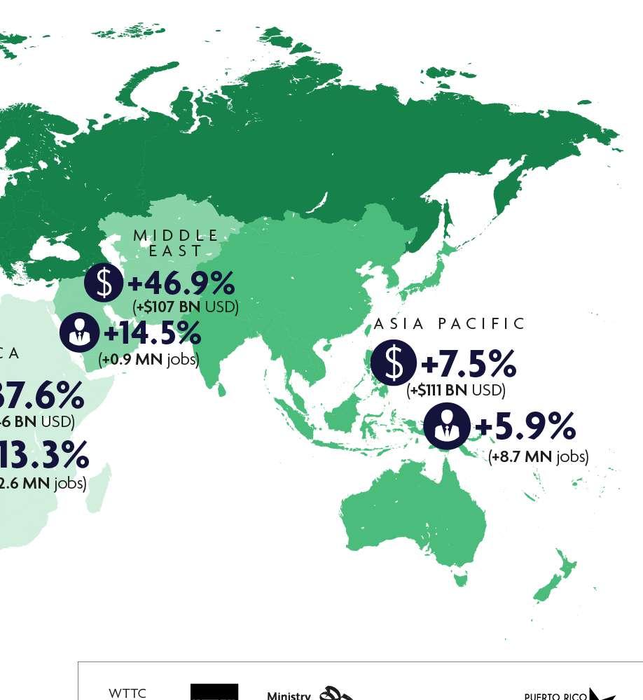 In 2022, the Travel & Tourism sector contributed 7.6% to global GDP; an increase of 22% from 2021 and only 23% below 2019 levels.