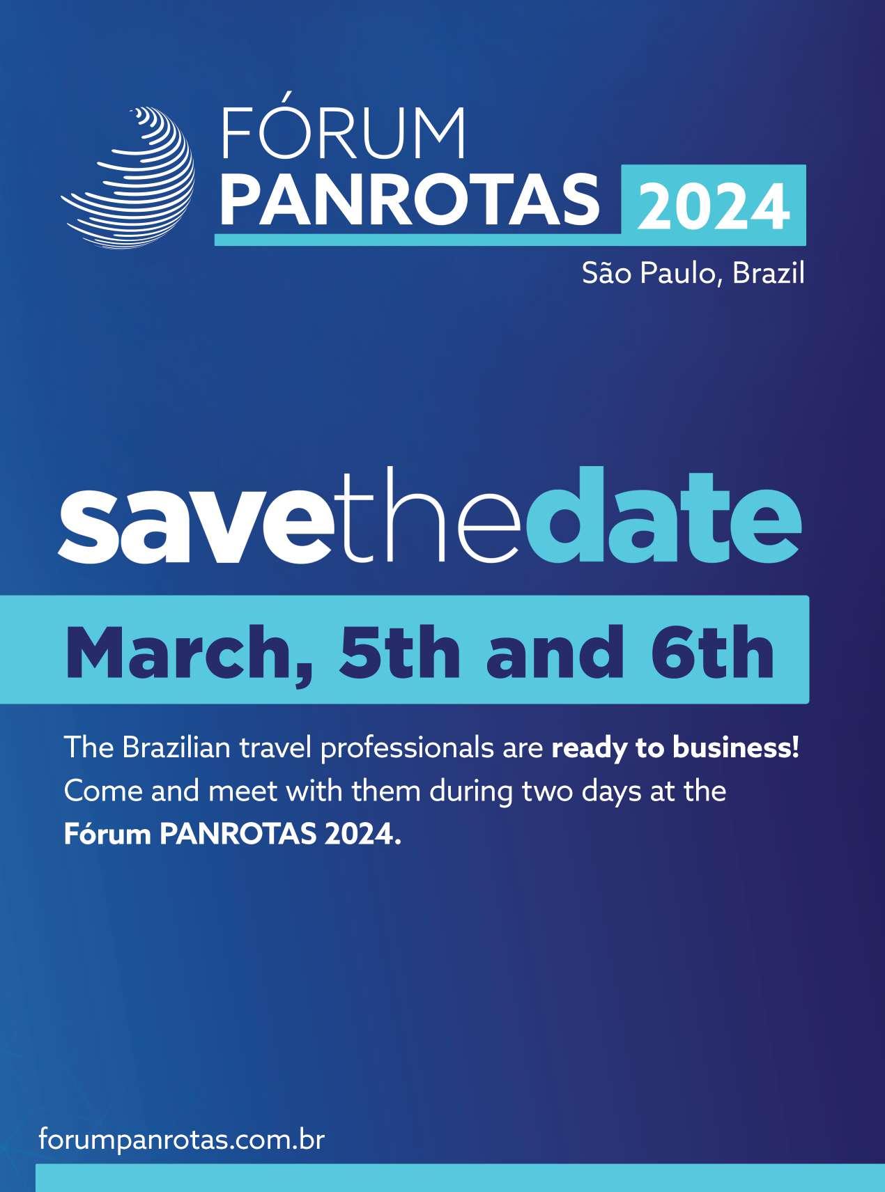 • Special issues on: Cruises, Tour Operators, ESG, LGBT Travel, Vacation Guide, Luxury Travel, Forum PANROTAS (Tourism Trends), Visit the Caribbean, Visit Florida, US Destinations, and Year in Review