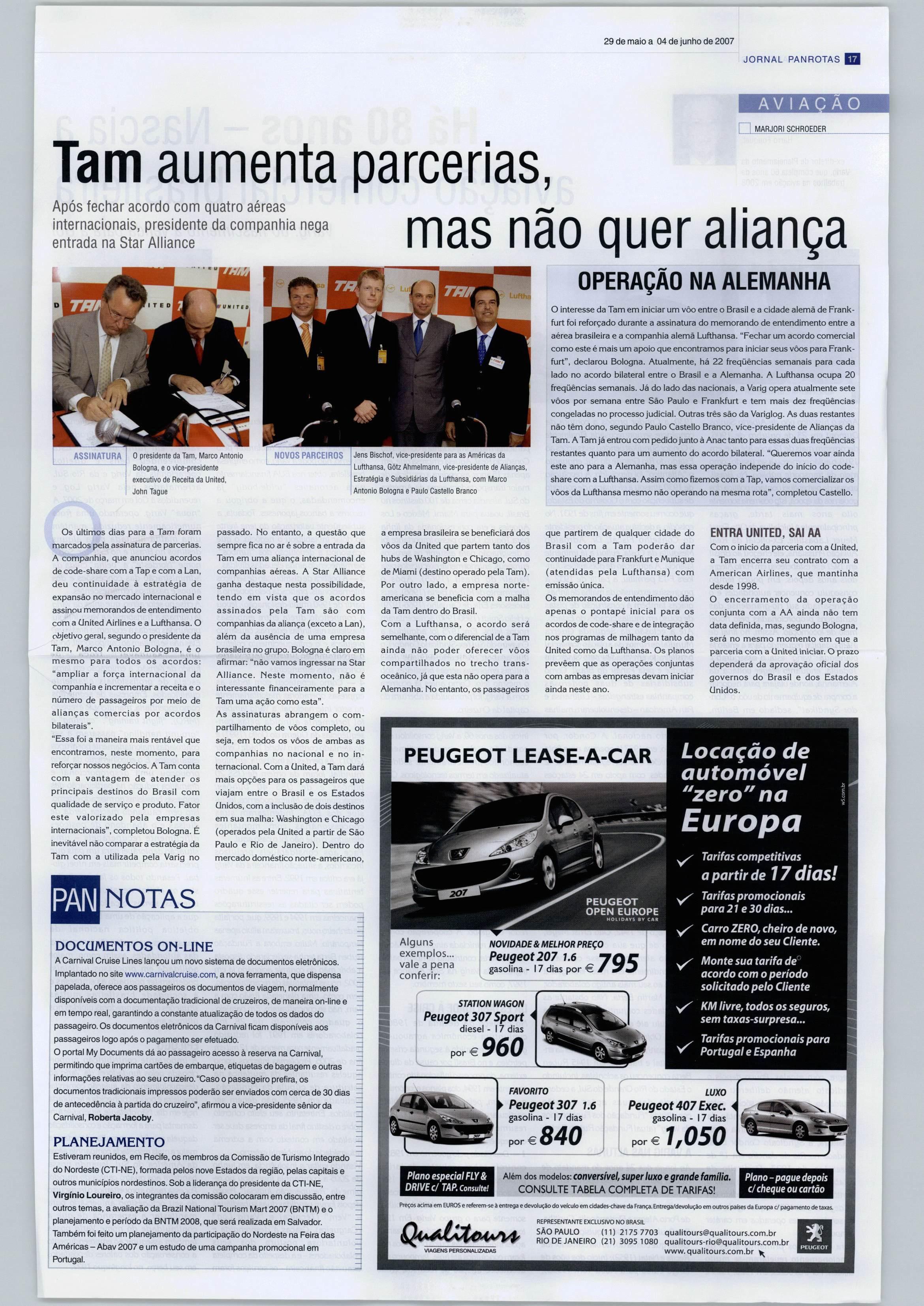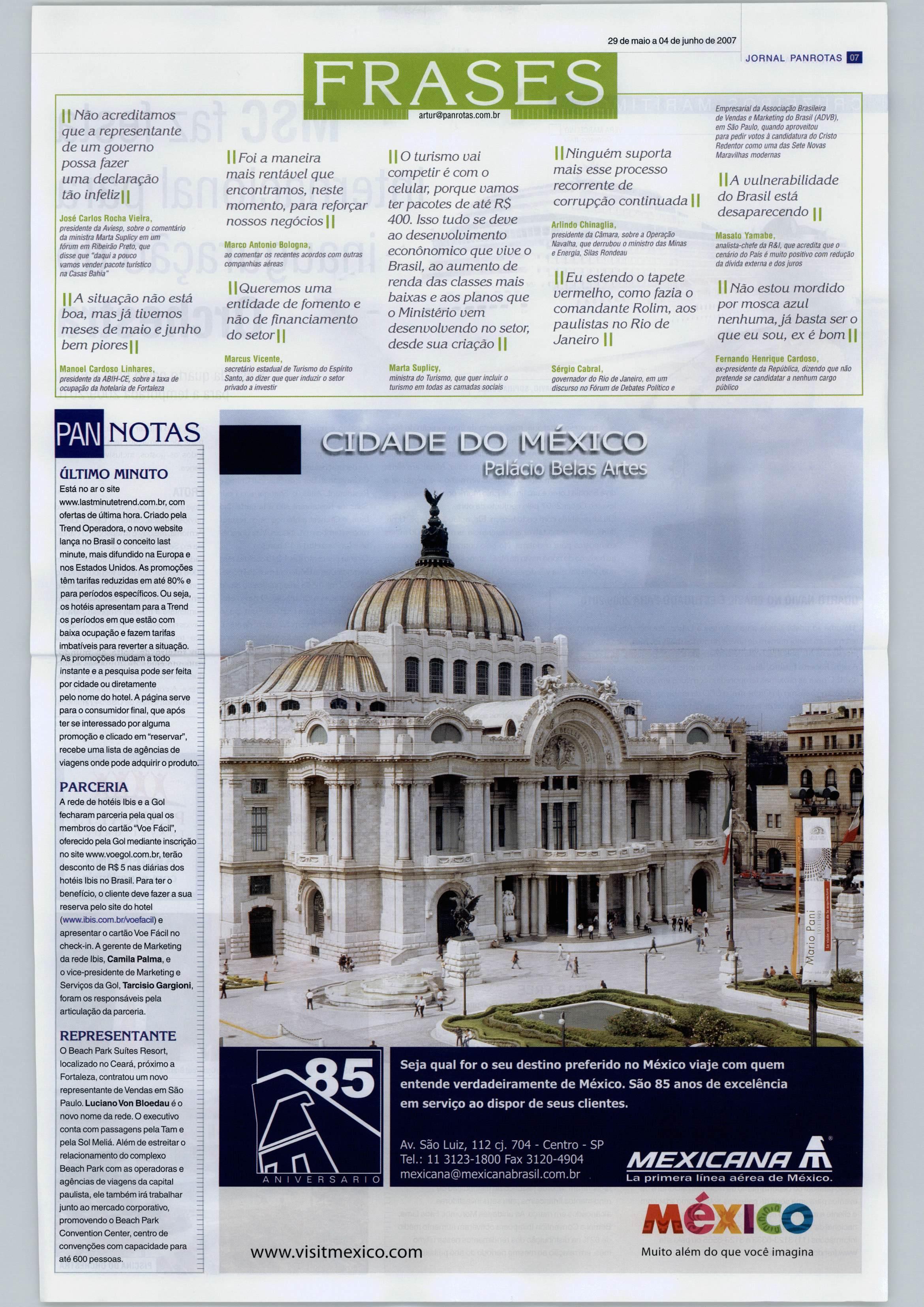 ! 29 de maio a04 de junho de 2007 BBI JORNAL PANROTAS BRASÍLIA POLÍTICAS DO TURISMO política brasília® panrotas.com.br FELIPE NIEMEYER iI