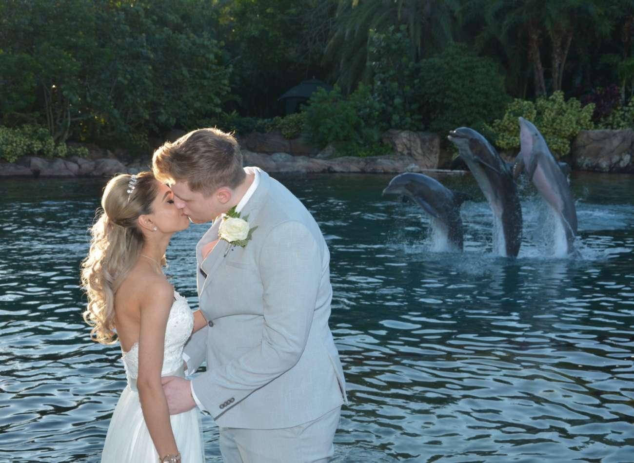O Discovery Cove é um oásis com serviço all-inclusive no coração de Orlando, oferecendo lagoas rochosas, recifes de corais, cachoeiras e praias de areia branca com incontáveis interações com animais. Os pacotes para ocasiões especiais são ideais para aniversários ou pedidos de casamento, incluindo cabana privativa decorada com arranjo floral e exposição do anel, boia com mensagem personalizada entregue por golfinho e pacote de fotos profissionais. O parque também oferece casamentos e renovação de votos, com cerimônias antes da abertura para uma experiência serena e intimista. Os noivos caminham por trilha natural com interações com animais exóticos e aves tropicais até o local da cerimônia. Após a celebração, o casal recebe cabana privativa, experiência com golfinhos de 30 minutos e acesso a todas as comodidades do parque.