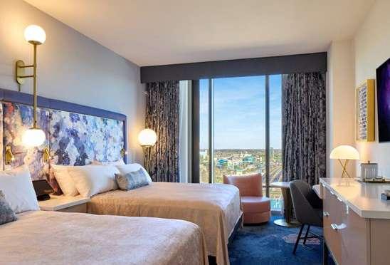 O Universal Helios Grand Hotel chama atenção por sua localização privilegiada com vistas inigualáveis e acesso exclusivo ao Universal Epic Universe para hóspedes que possuem ingresso do parque. Os quartos Club Level oferecem itens extras exclusivos, incluindo acesso a um lounge privativo de 128 metros quadrados no nono andar, café da manhã continental, aperitivos à noite e serviço de concierge particular.