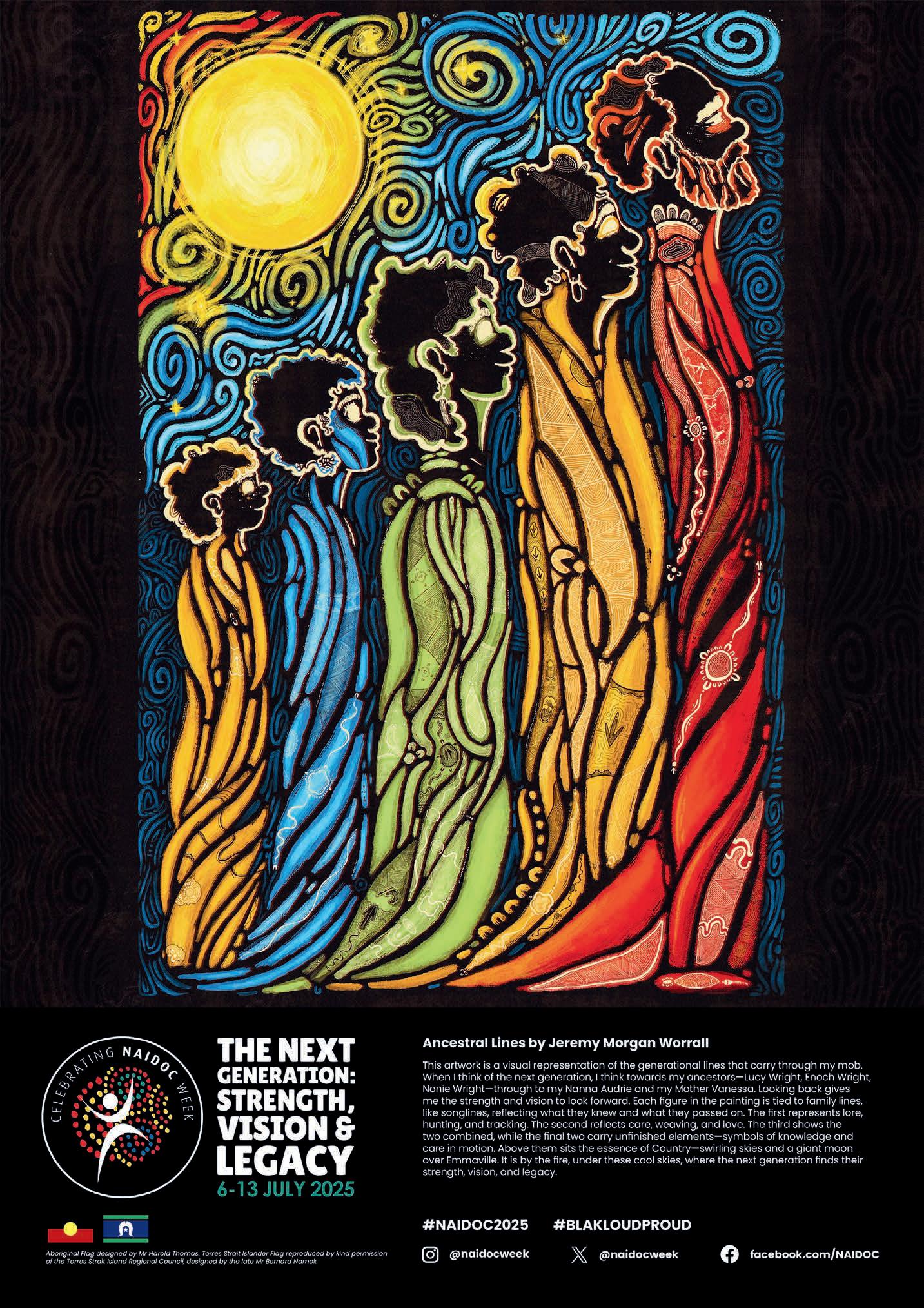 Our cover features this year’s official NAIDOC Week artwork, “Ancestral Lines” by Jeremy Morgan Worrall, who says: “This artwork is a visual representation of the generational lines that carry through my mob.