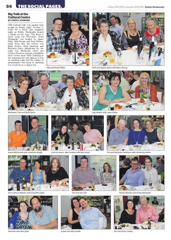Big Talk at the Cultural Centre BY CHERYL HUSBAND THE Outlook Cafe was packed with people on Friday night, October 9, ready for a funny and insightful night as Dubbo Weekender hosted a debate on the topic “The Book Is Dead. Long Live Television”. Team Weekender was headed by James Eddy, Sally Bryant and Tony Webber, while Team Arts and Culture was Mark Horton, Chris Annemat and Michaela Davis. Adjudicator for the night was Weekender editor Jen Cowley. Everyone enjoyed a delightful three course meal while listening to the arguments for and against. It was an amazing night and the calibre of presentations was equal to anything you would see in a capital city. Kate and Karel Giffen