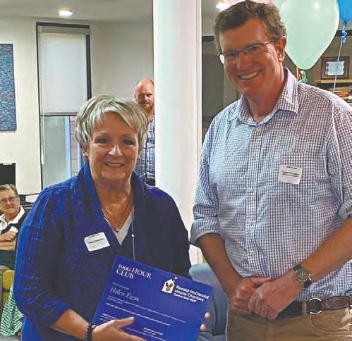 Volunteer Helen Ewin is congratulated on her 1,000 volunteer hours by Member for Calare Andrew Gee