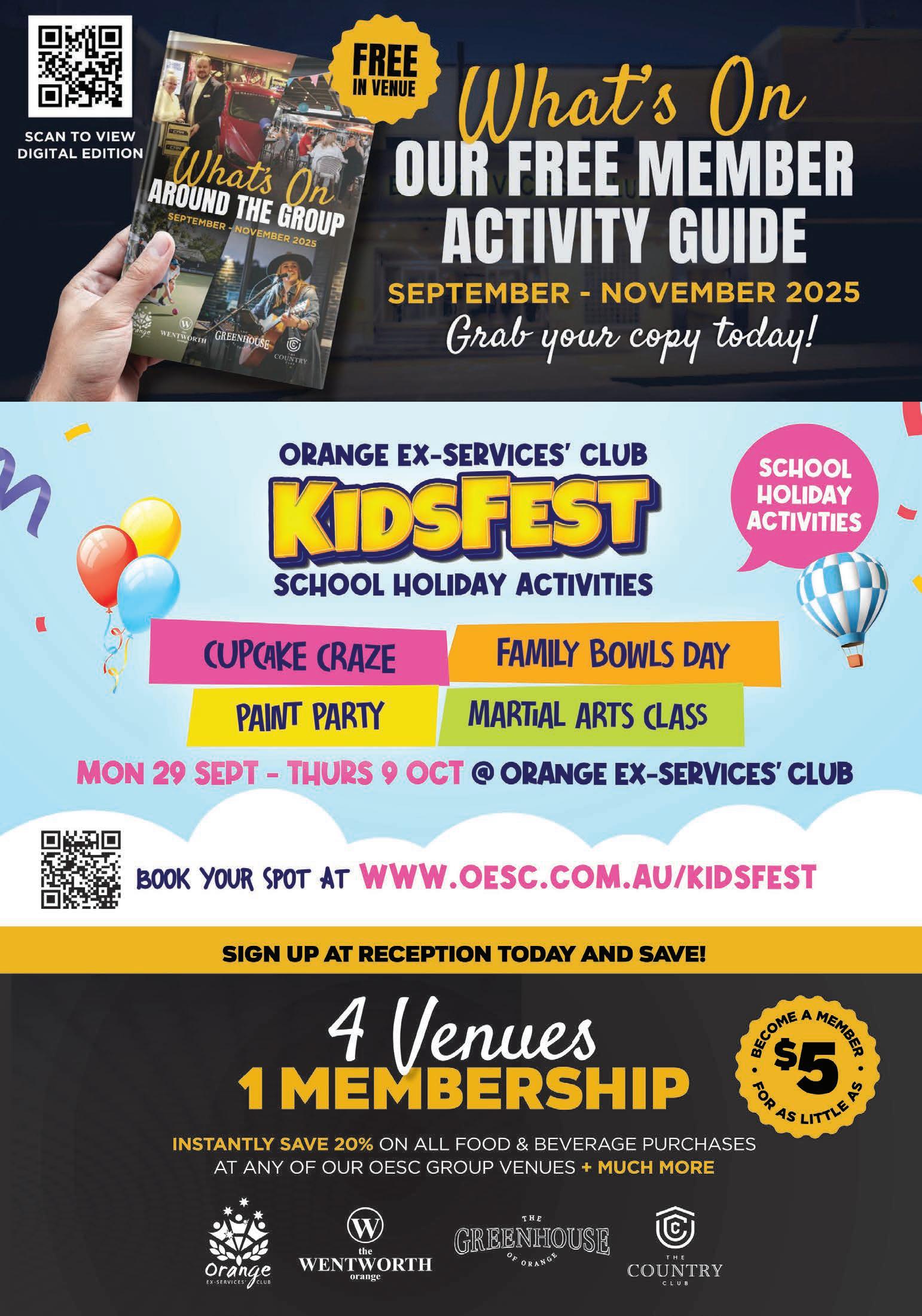 While tickets for Zest Fest 2025 will once again be free, registration is essential. Head to www.zestfest. com.au for tickets and more information, and keep an eye on OrangeCityLife for more updates.