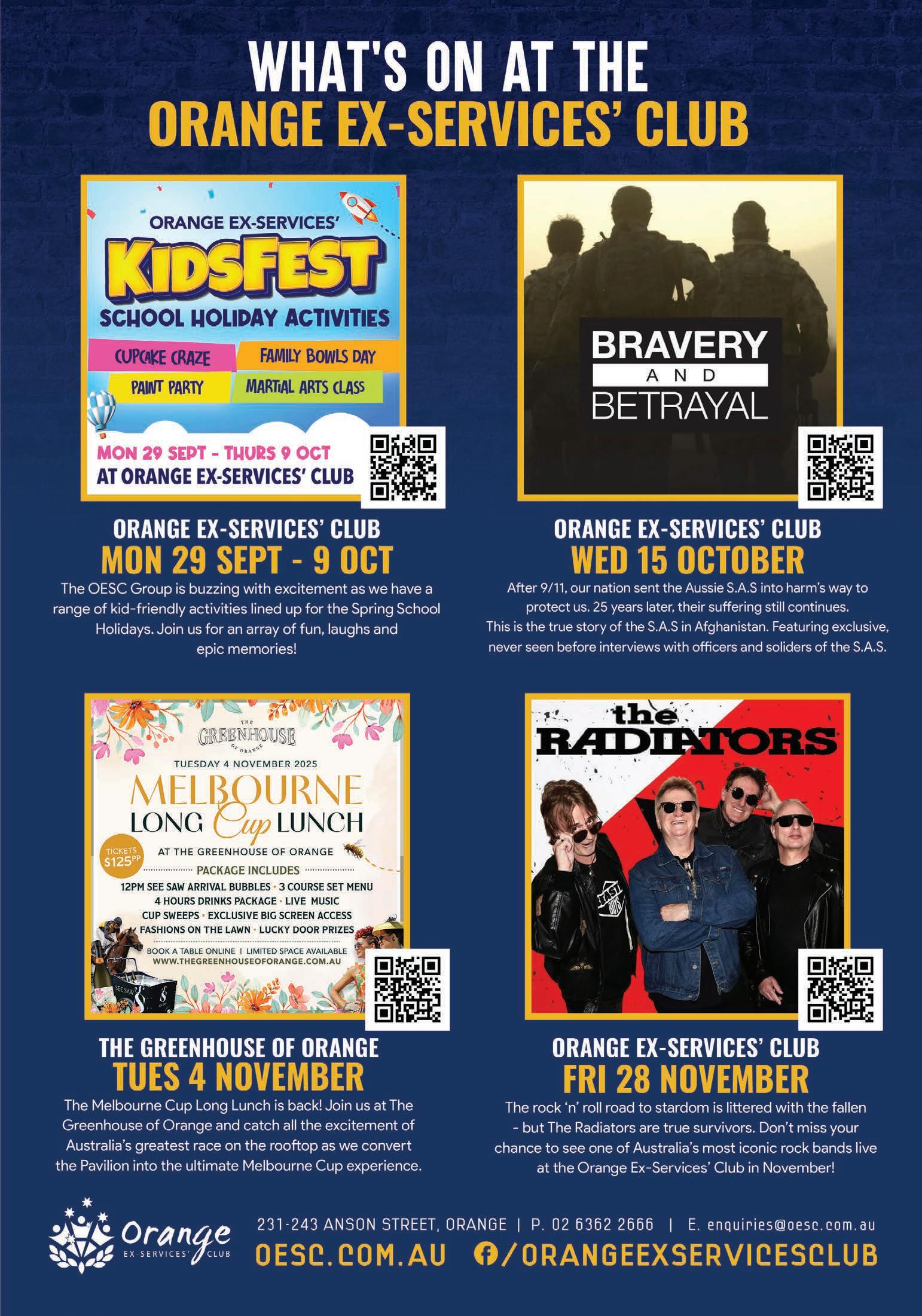 General disclaimer: Whilst every care is taken in preparing this publication, we cannot be held responsible for errors or omissions. The publisher accepts no responsibility for letters, notices and other material contributed for publication. The submitter accepts full responsibility for material, warrants that it is accurate, and indemnifies the publisher against any claim or action. All advertisers, including those placing display and classified or advertorial material, warrant that such material is true and accurate and meets all applicable laws and indemnifies the publisher against all liabilities that may arise from the publication of such material. Opinions expressed in the publication are not necessarily those of the publisher. Articles contain information of a general nature – readers should always seek professional advice relevant to their particular circumstances. Complaints: Orange City Life has a policy of correcting mistakes promptly. If you have a complaint about published material, contact us in writing. If the matter remains unresolved, you may wish to contact the Australian Press Council.