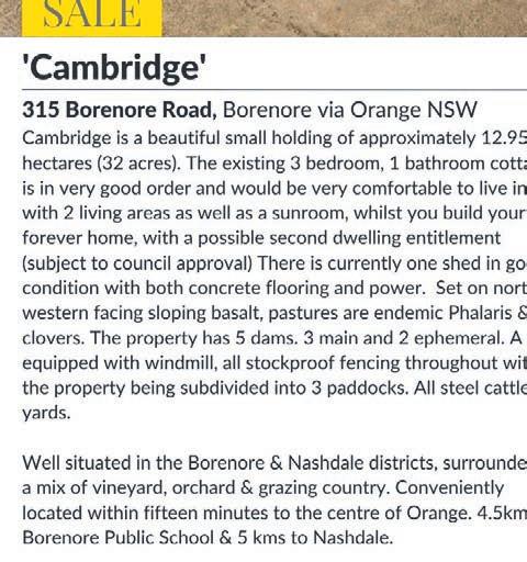 Vintage car enthusiasts were thrilled to see a rare vintage Armstrong Whitworth car in Orange in May 1965. Owners Frank and Jack McGowen and Peter Kable dropped in at Orange Technical College to show the car to automove engineering students. The brothers bought the car in 1937 and started restoring it in the 1950s. The car’s average speed was 30 miles per hour (about 50km/h) and it did 20 miles to the gallon, using a pint of oil every 500 miles. Orange and District Historical Society holds a working day at Heritage Co age (148 March Street) each Wednesday from 10.30am to 4pm (with a lunch break from 12.30-1.30pm). Members are available to answer enquiries at this me.