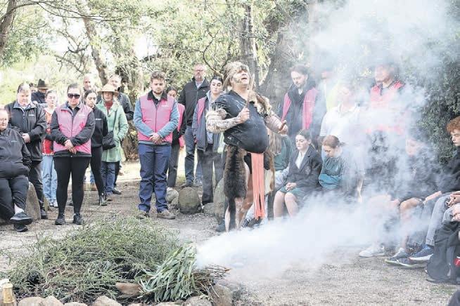 Uncle Dale Carr giving a Welcome to Country and Smoking Ceremony at Charles Sturt University’s yarning circle on Tuesday morning.