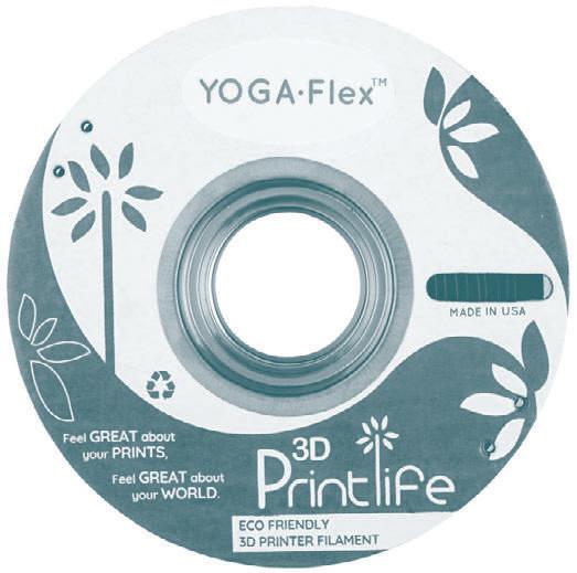YOGA Flex is a compostable semi-flexible filament made from a blend of green materials, including cornstarch, glucose, lignin, and cellulose from wood, as well as starch from potatoes.