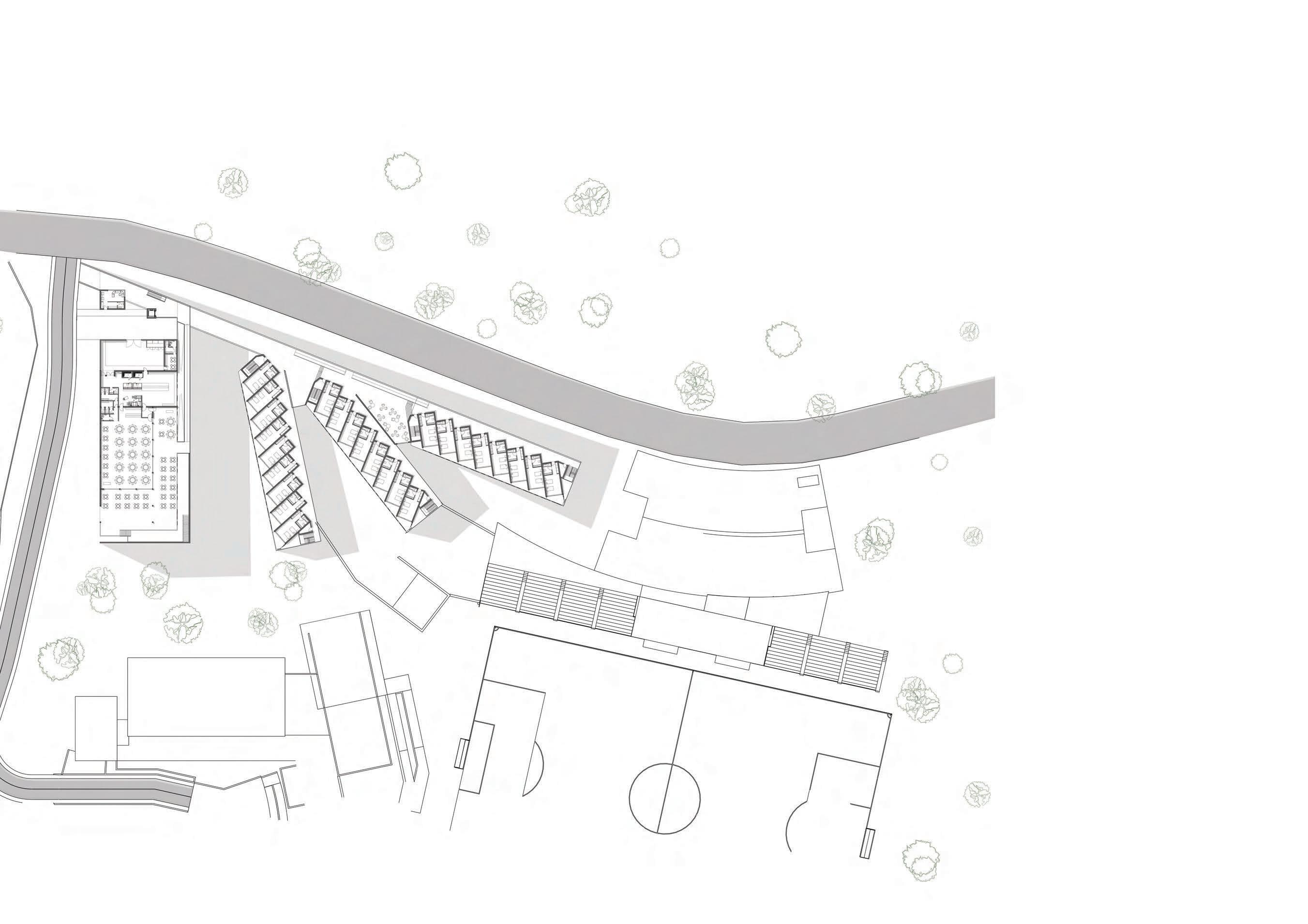 Plan of the facilities including cafe/restaurant the housing units as well as the football field.