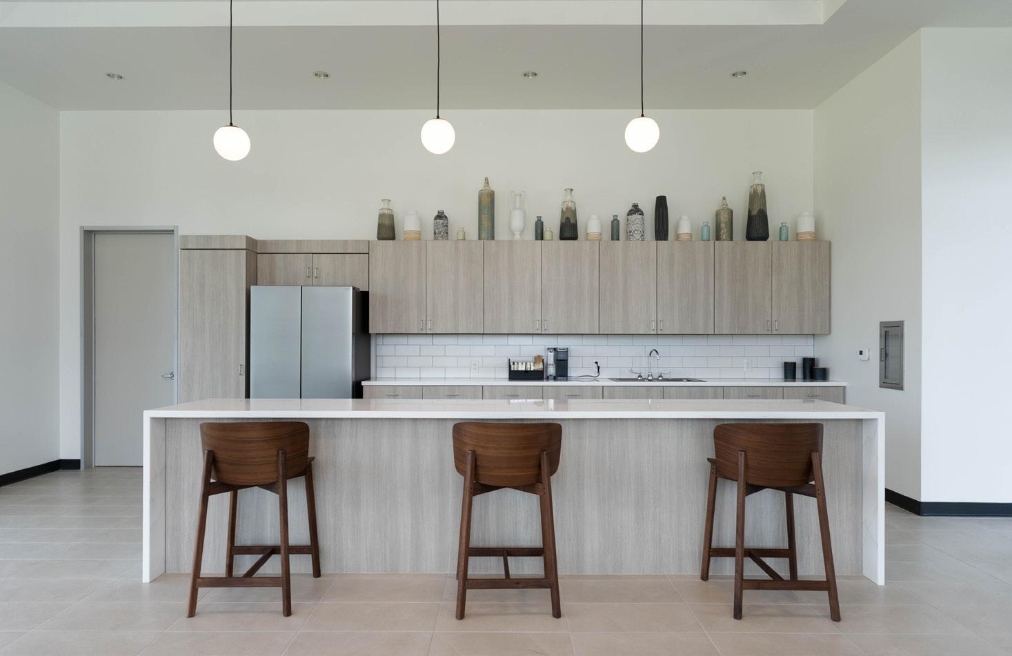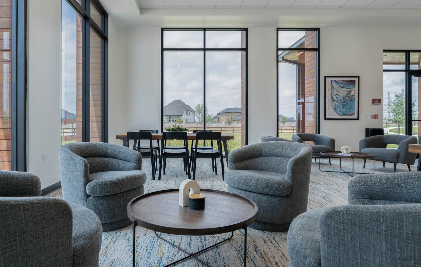 Inspired by the idea of a lake house retreat, Sundance Cove was designed to foster a slower pace of life— a peaceful alternative to urban life. The community center and fitness center are both intentional escapes, where residents can leave the demands of everyday life behind, relax, and focus on their well-being.