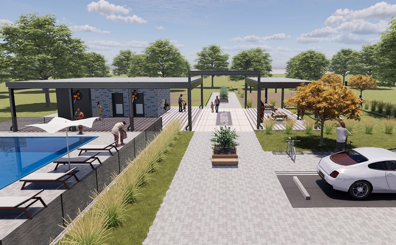 Speed was critical for this project, with the Owner starting late but needing to deliver the recreation facility by Summer 2024. With over 500 homes already sold and over 1,500 residents in the neighborhood, it was paramount to get the recreation facilities up and running for the busy summer season. To achieve this, we had to advance the design quickly with an Ownership group involving many decision-makers. Site and building renderings were the backbone of this approval process and allowed us to quickly test and advance different design ideas and convey them digitally with the Ownership group to achieve consensus.
