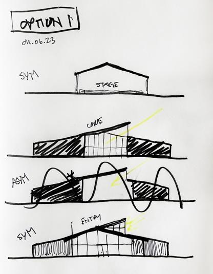 The site constraints begin to offer a unique situation that allows the building to become more than a rectangular box. The procession to the building through a central road and around a round drop-off area asks the building why would it be anything other than curved? The structure becomes a broken radius that allows the two separate pieces of the program to exist similarly but still maintain their own boundaries to allow their function to thrive.