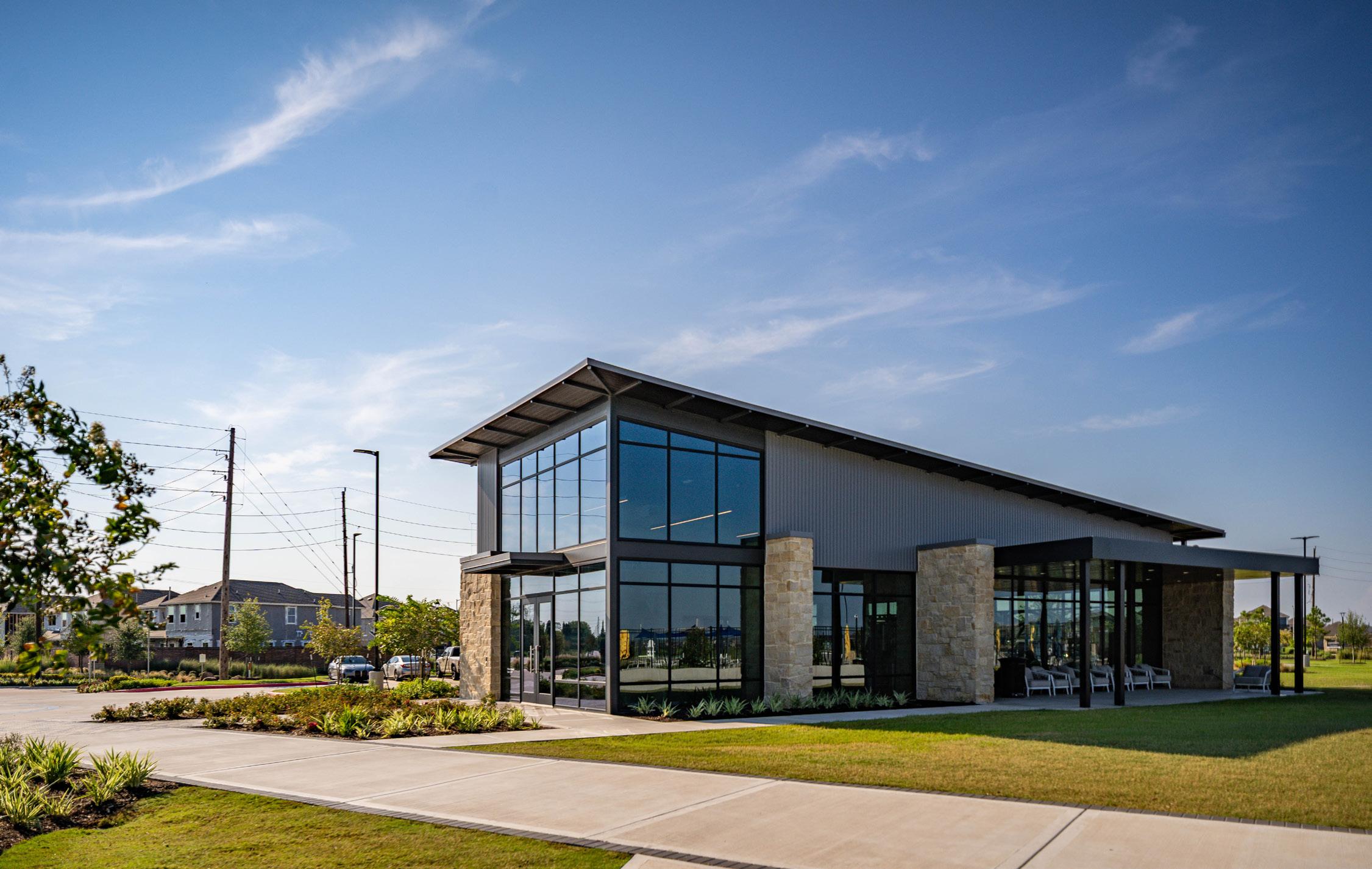 Sundance Cove is a 6,353-square-foot, two-building amenity complex designed to serve a growing residential development in Crosby, Texas. Located outside Houston’s urban core, the community’s needs reflect a shift in how residents live, work, and gather—making flexibility, wellness, and accessibility key priorities in the design.