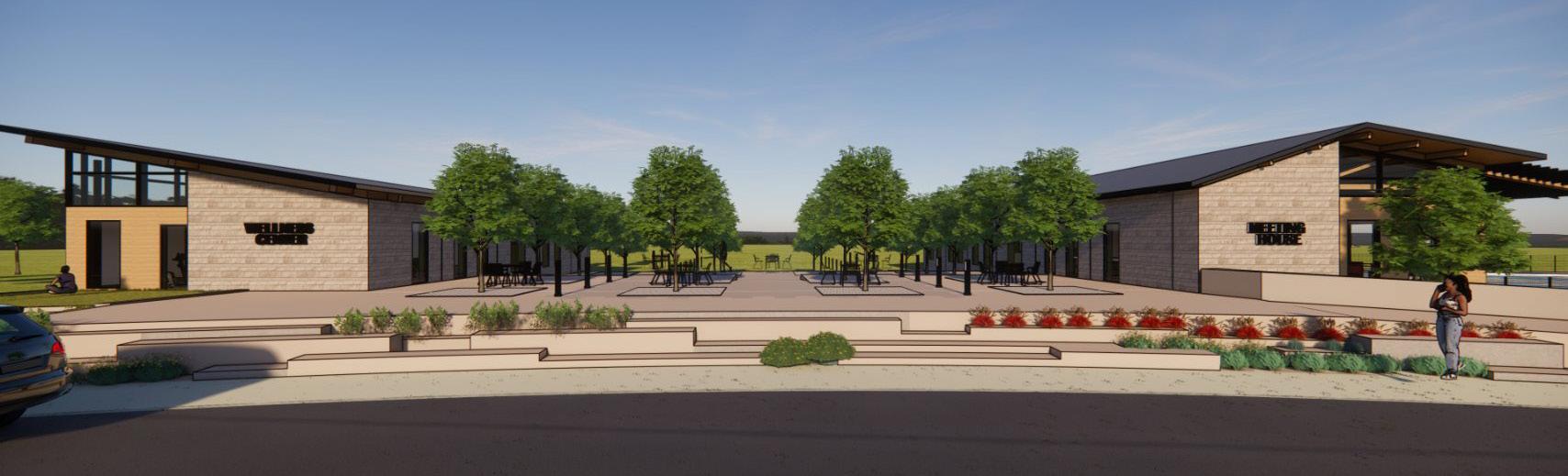 This project includes a community center and a fitness center, connected by a multilevel plaza that elevates the sense of place and enhances the experience between buildings. Developed in collaboration with Landscape Architect, the layout and landscape were master-planned to create a seamless indoor-outdoor experience while offering residents a place to connect, recharge, and stay active close to home.