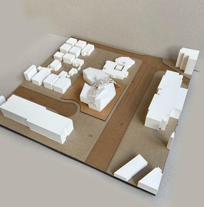 Thirty-second scale foam study models exploring different site conditions and effects and how the building form could respond.