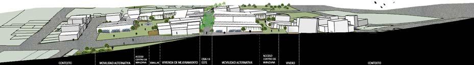 Este nodo se configura con el trazado y la huella urbana que dejo el Patio La reforma, en donde interfiriendo la topografía se generó posibilidades de orientaciones del suelo, continuando el tejido e interviniendo en el borde con diferentes tipologías activando el nodo socialmente, vehicular y ambiental, dando apertura al proyecto.