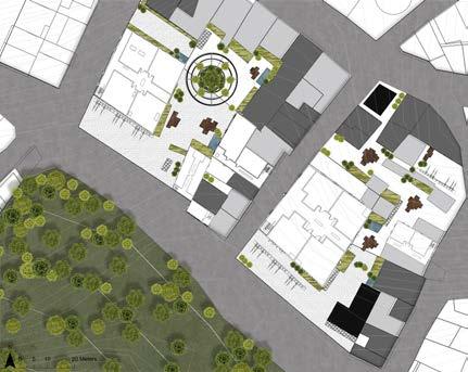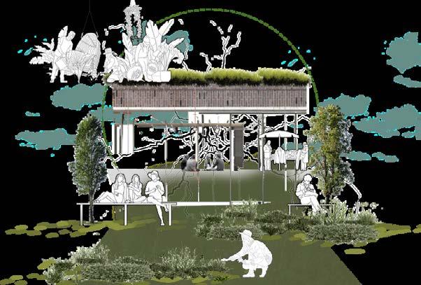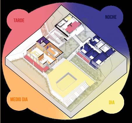 Se establecen usos de servicios culturales, sociales y de ocio, los cuales rodean el anfiteatro, genera diferentes recorridos a no motorizados, volviéndose un centro social a nivel urbano, alrededor de estos se establecen los espacios activos/pasivos del proyecto, en donde con ayuda de la vegetación los espacios pasivos toman lugar dando apertura a los talleres y los activos como el anfiteatro y la escalinata principal se ve un involucramiento de personas hacia los senderos e instalaciones del proyecto.