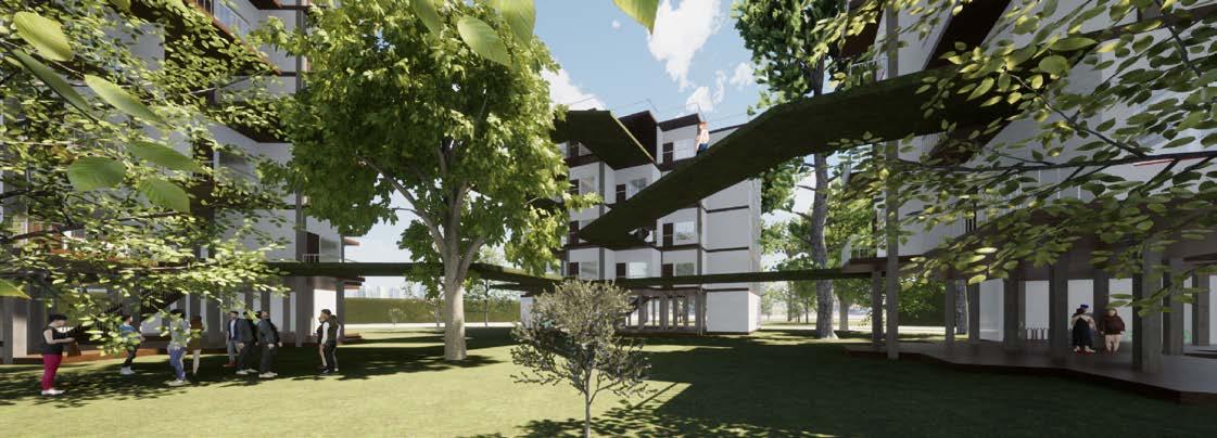Se articulan caminos favorables para el peatón y espacio para la continuación de un parque lineal que conecta el parque entre nubes con el parque ecológico Cantarrana, ofreciendo un parque a nivel metropolitano.
