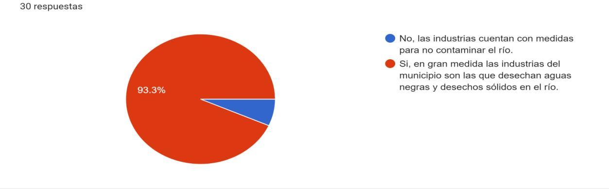Figura 45. Perspectiva de la población sobre la contribución de la descarga de aguas residuales por parte de las industrias (Elaboración propia)...................