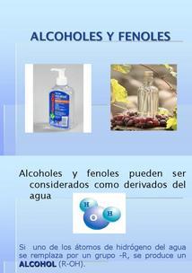 Son derivados aromáticos que presentan grupos "hidroxilo", -OH. Los fenoles tienen cierto carácter ácido y forman sales metálicas. Se encuentran ampliamente distribuidos en productos naturales, como los taninos.