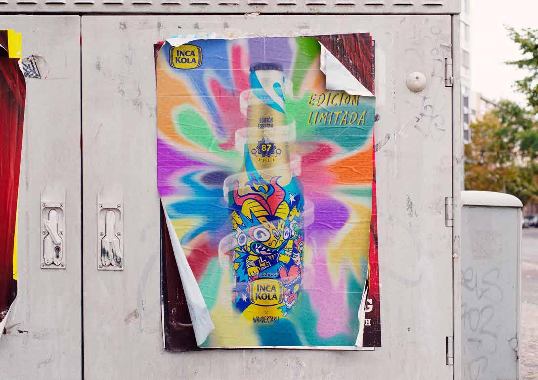 Se realizó un estudio de los productos de edición limitada de inca kola, se ideó la propuesta con el concepto que maneja la marca, diversidad, se utilizó por ello una gran variedad de colores en la edición del afiche.
