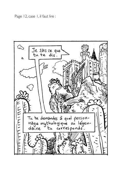 Errata est une bande dessinée ayant pour objet une mise en déroute particulièrement joueuse du récit romanesque, en ce qu’elle est exclusivement constituée, ainsi que son titre l’indique, d’errata, c’est à dire de cases destinées à venir s’insérer ou à remplacer celles d’un album dont nous ne connaissons pourtant rien.