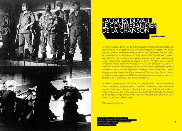 Jacques Duvall et Les Editions du Caïd bousculent ici le concept de la bio d’artiste, avec un livre adossé à une documentation de toute première main. Cette très belle compilation d’articles de presse et d’interviews (dont le texte inédit de son ami Gilles Verlant, écrit peu avant le décès de celui-ci) entre en résonance avec une galerie de photos et de documents inattendus pour, au final, composer un inventaire subjectif et tellement cohérent de moments clés. (...) Au fil des pages et des images, les souvenirs duvalliens s’imbriquent et se complètent, en creux. Avec la patte de Duvall, celle qui fait mouche avec ses airs de ne pas y botter, en touche qui touche.