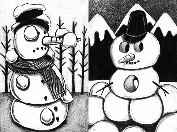 - Pourquoi avoir choisi de faire des bonhommes de neige pour répondre à ma proposition d’un livre à colorier ?