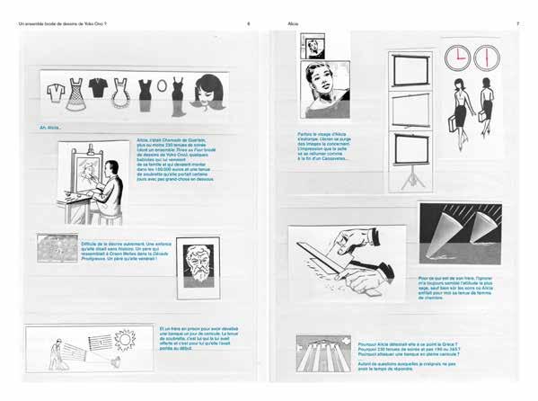 Alicia est une (expérience de) bande dessinée réalisée au moyen de pictogrammes découpés dans les manuels de photographie amateur. Des vignettes qui, glissées dans un album pour collection de timbres, finissent par perdre leur abstraction graphique pour se charger d’une épaisseur psychologique.