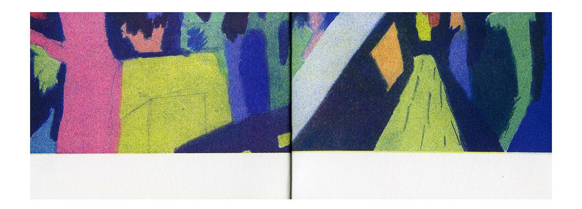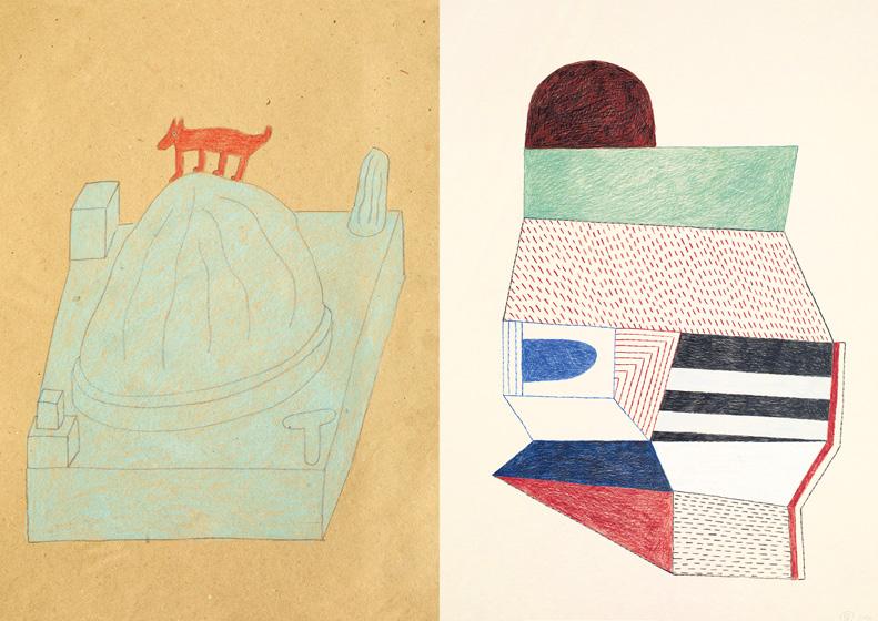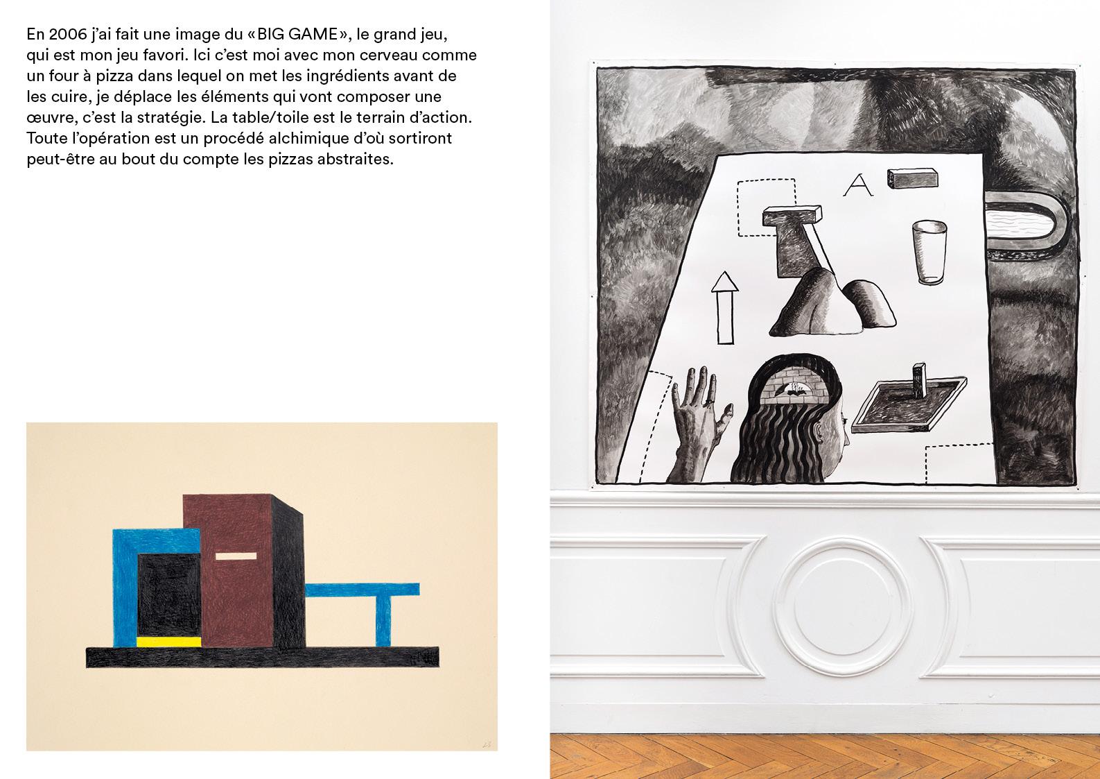 Vient ensuite la question du dessin, centrale chez cet artiste qui est avant tout un homme de l’image. C’est, dans ce livre, toujours un dessin à la plume et à l’encre de chine, parfois coloré d’aquarelle, d’acrylique ou d’aplats de couleurs superposés.