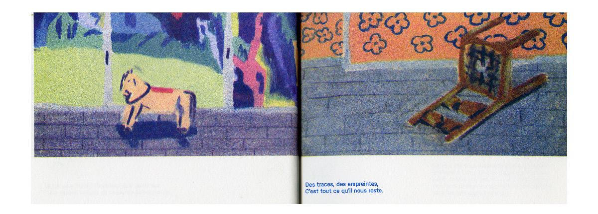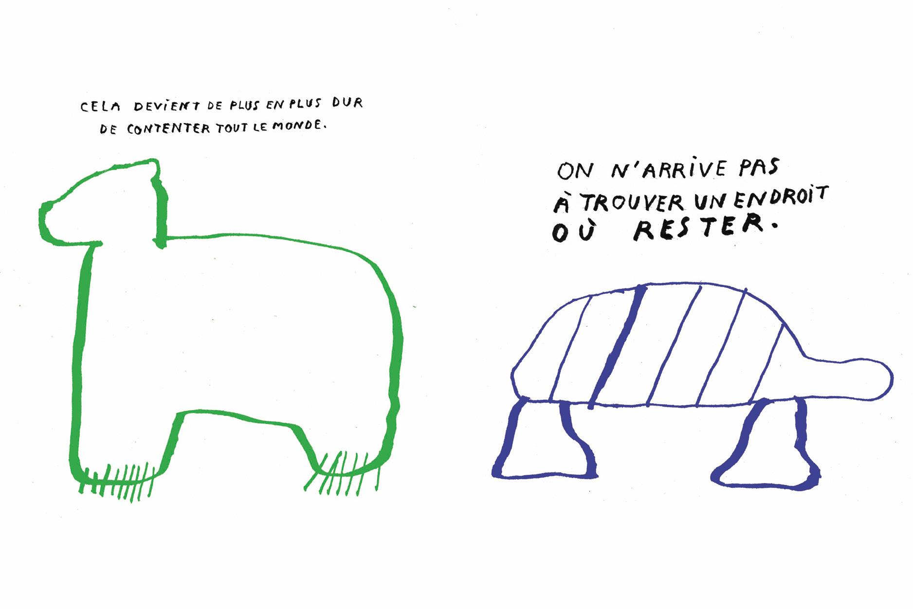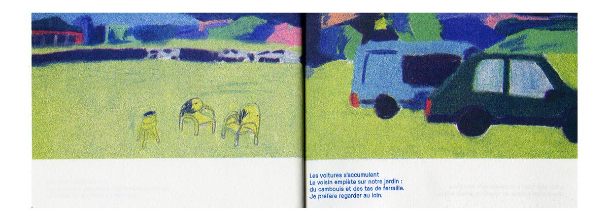 Pour ce quatrième livre avec Guillaume, nous avons décidé de porter à la fois son travail d’artiste et de poète. L’idée s’est imposée au fil du temps. Texte et dessins construisent un univers. Ils sont en regards l’un de l’autre, jamais illustratifs, mais il y a une sorte de tension, un dialogue même, qui crée toute la force du livre.