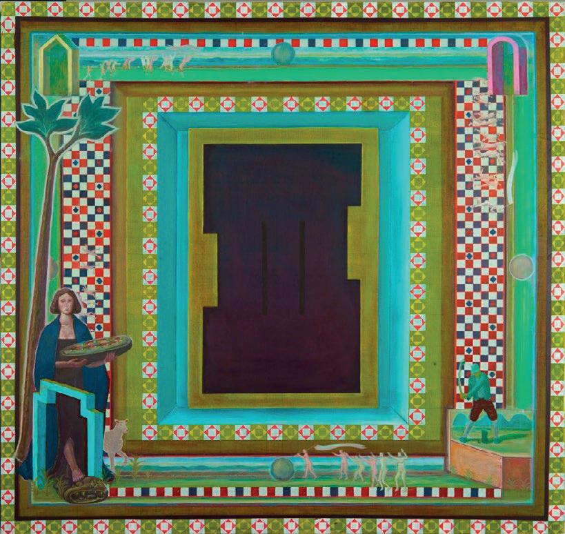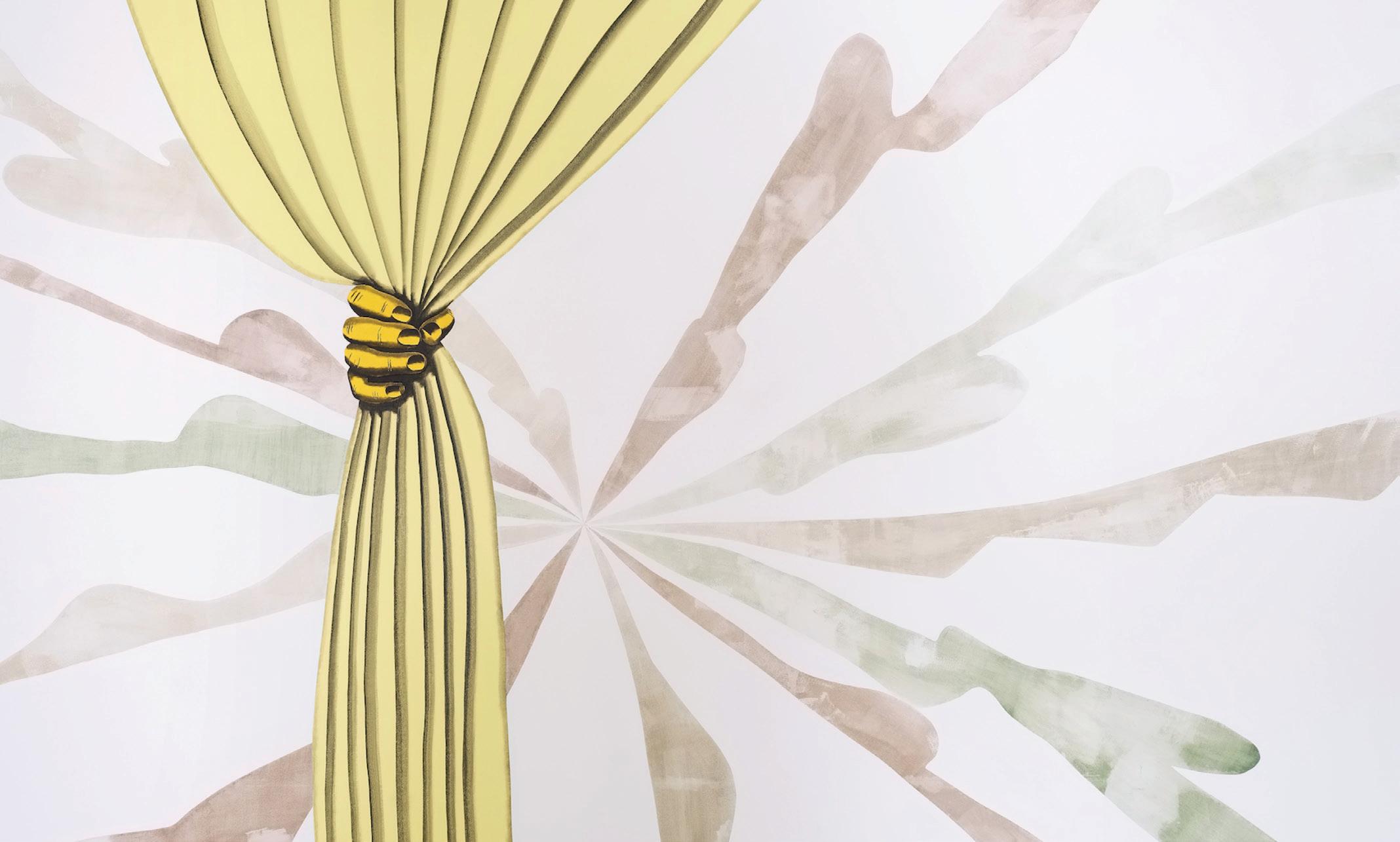 Maîtrisant la technique du trompe-l’œil, Sarah Margnetti a développé un style pictural qui com bine illusions d’optique et motifs abstraits, qu’elle déploie principalement en peintures murales monumen-tales, parfois sur toile. Les motifs convoqués dans ses œuvres représentent des frag ments de corps, le plus souvent féminins, dont la fonction est parfois détournée (une oreille devient un corps, un corps un cerveau, etc.) ou démulti pliée. Ils surgissent ou se fondent dans des élé ments d’architecture ou d’ameublement tirés du monde du théâtre – rideaux, balustrades, fau teuils, etc.