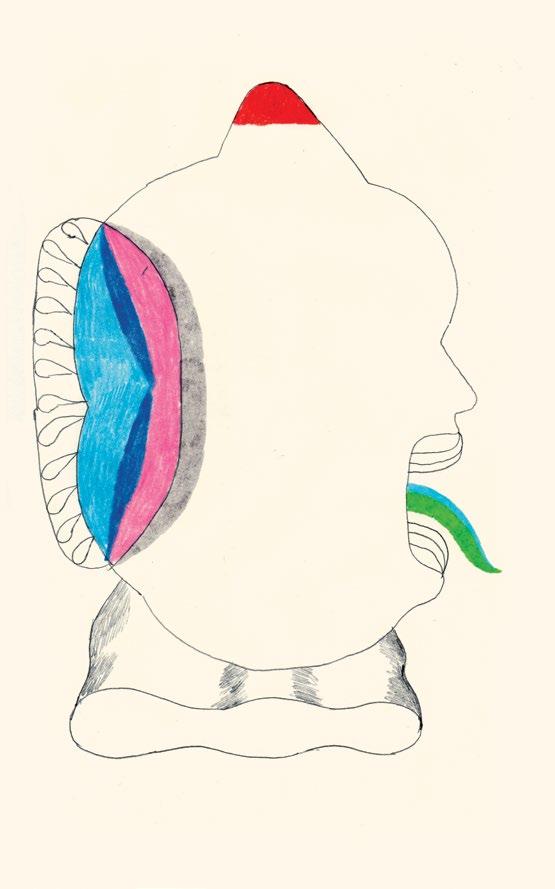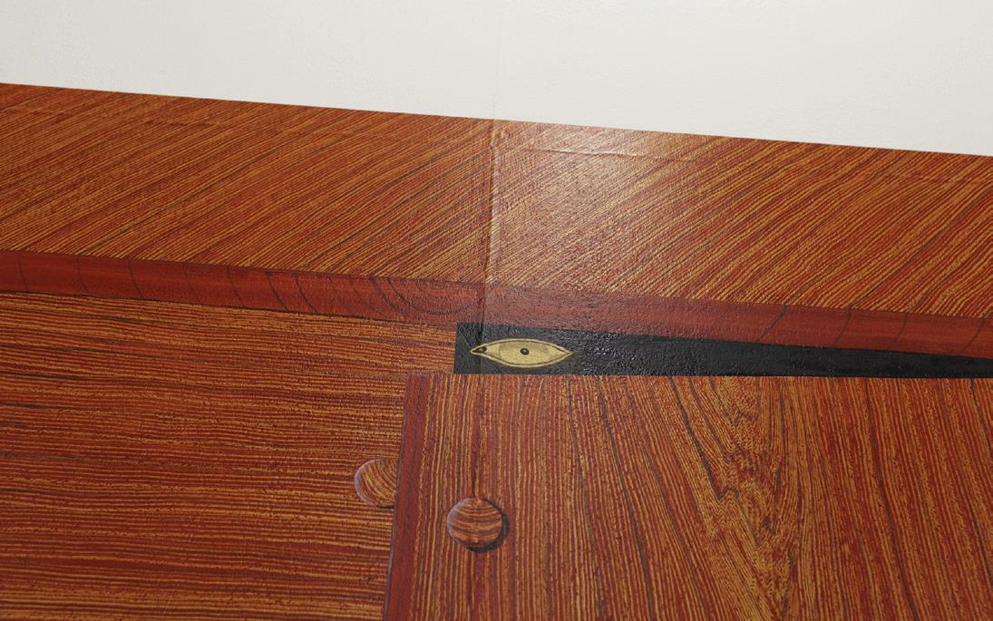 Parmi les organes sensoriels, l’oreille est un motif récurrent : elle disparaît dans les nœuds du bois d’un décor en trompe-l’œil, pro longe l’ornement d’une cheminée, se métamor phose en palette d’artiste ou prend la place des yeux. La pratique de l’artiste semble ainsi valo riser l’écoute plutôt que la parole ou la vision, jouant et déjouant les motifs traditionnels de l’histoire de l’art, celui du corps féminin plus particulièrement.