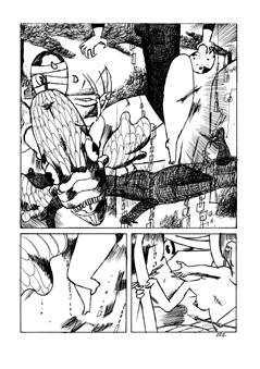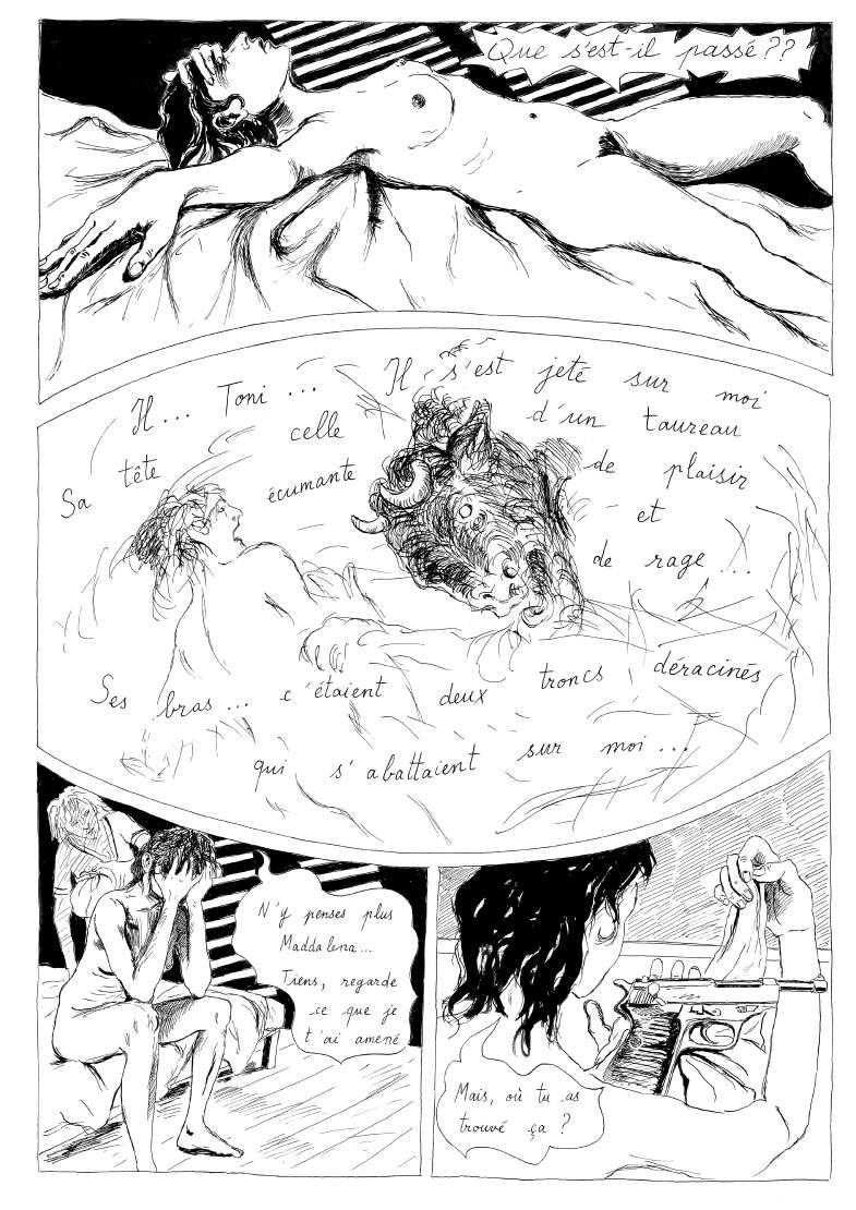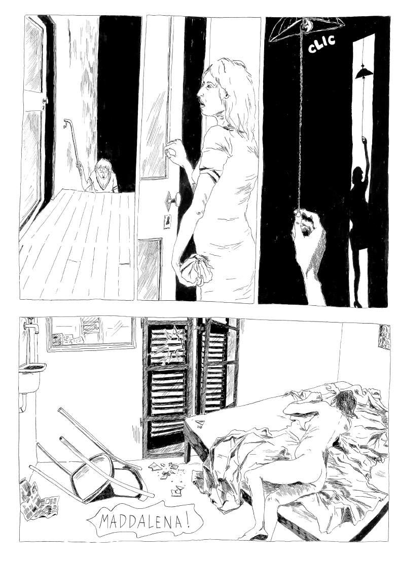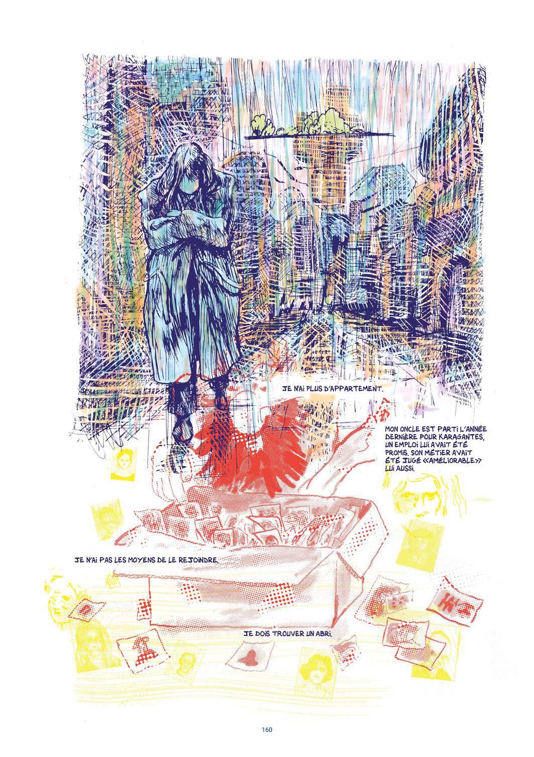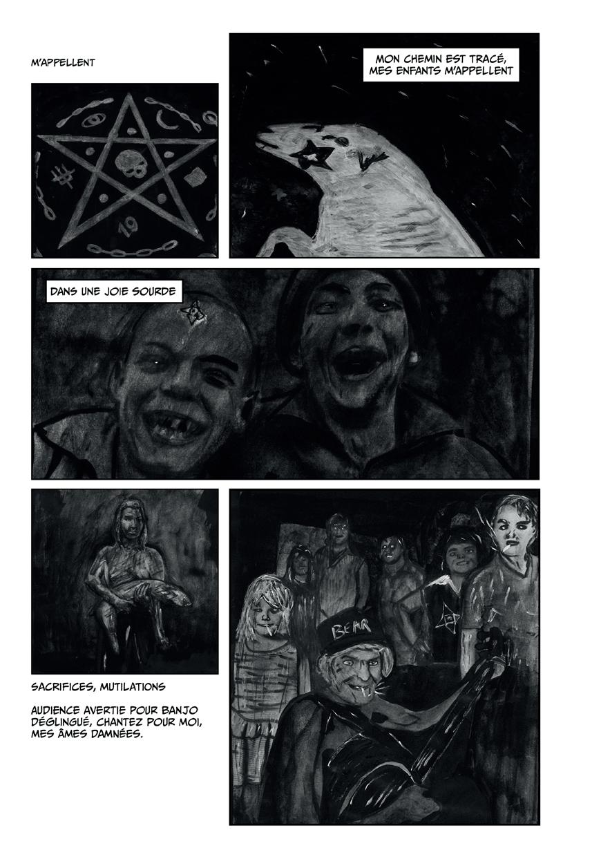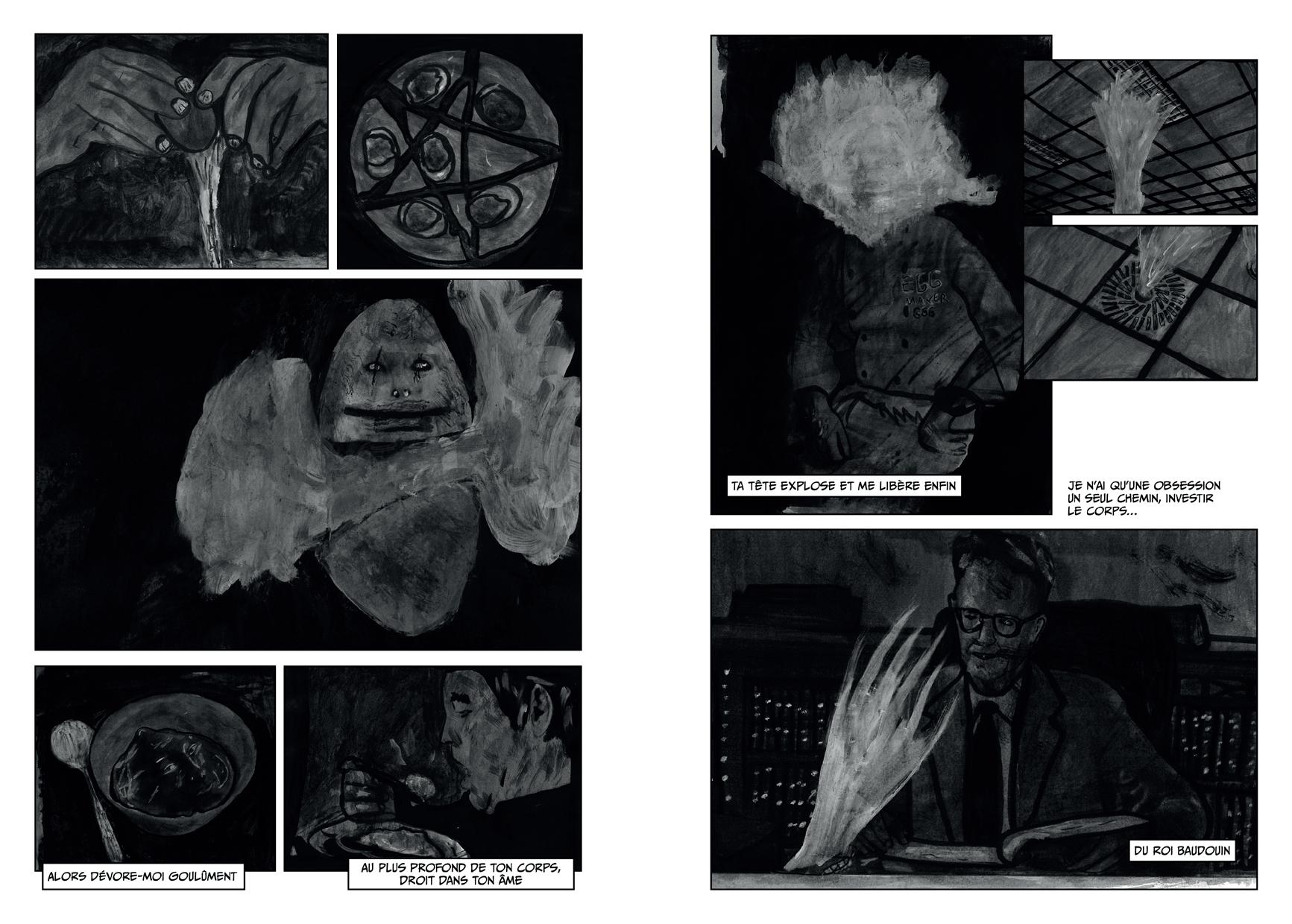 Le livre initiallement prévu en Riso, sera imprimé en offset pour reproduire au plus près les magnifiques planches à l’encre de l’auteur, qui déroule un récit visuel impressionant.