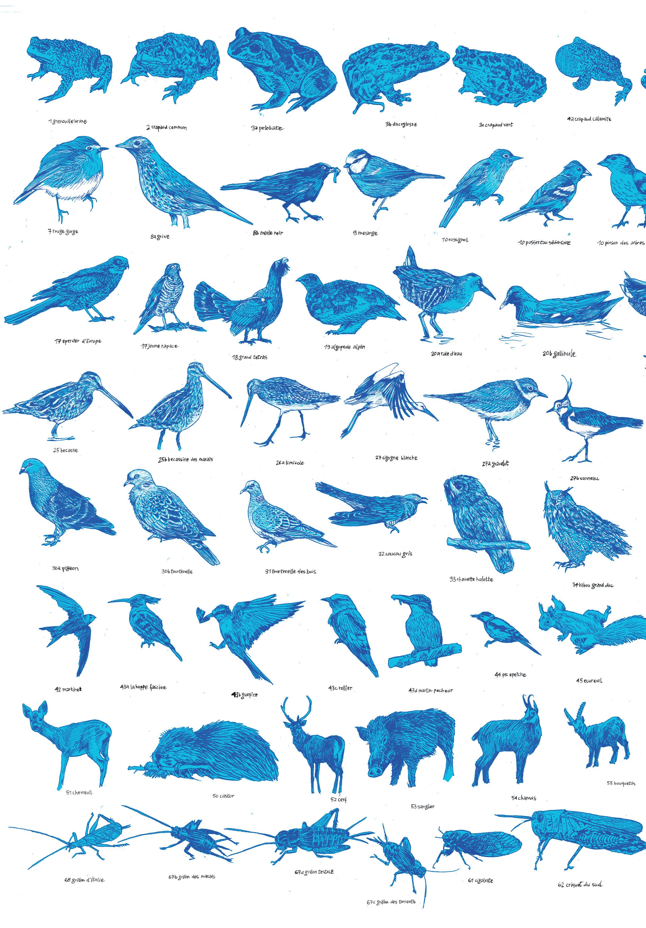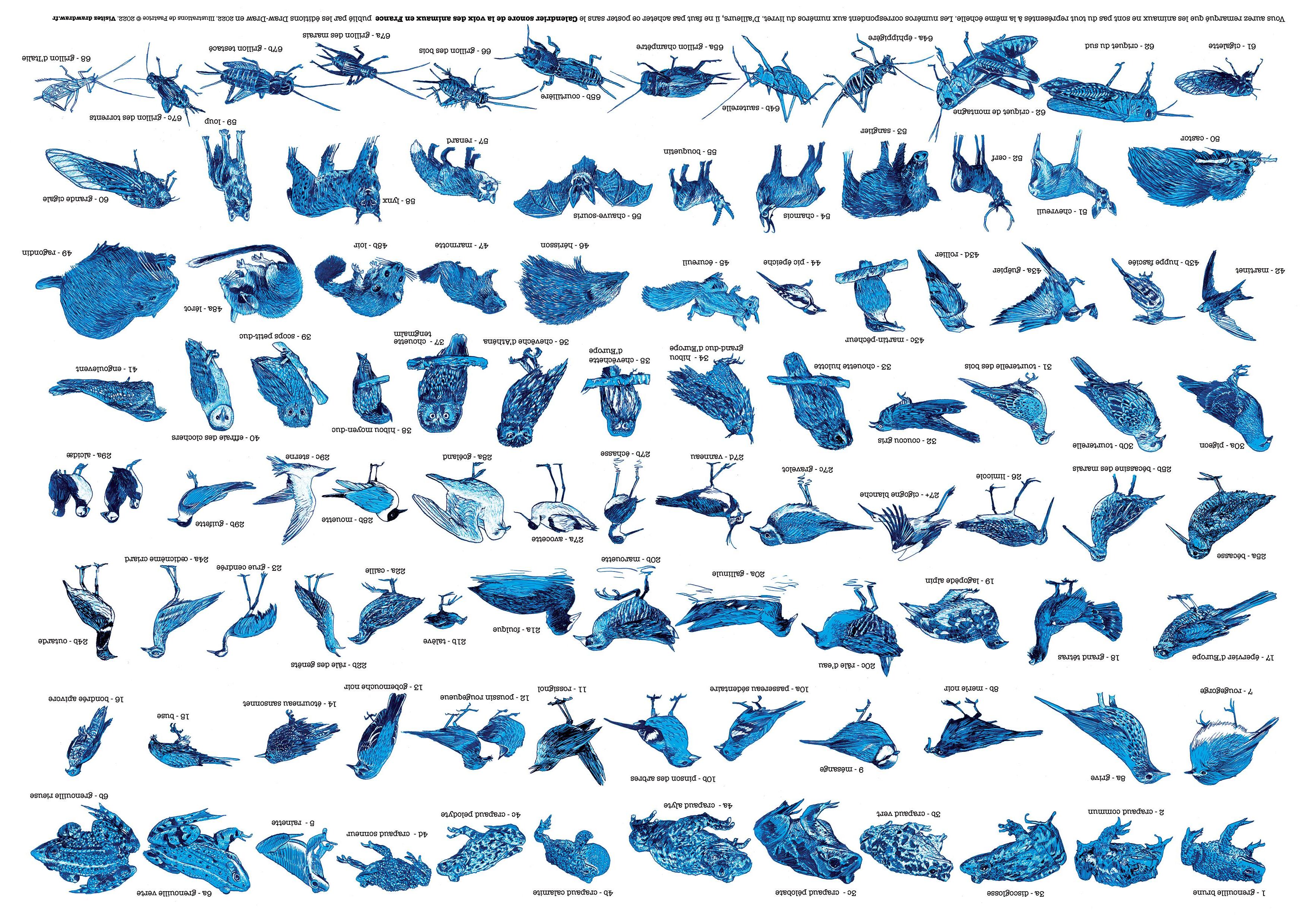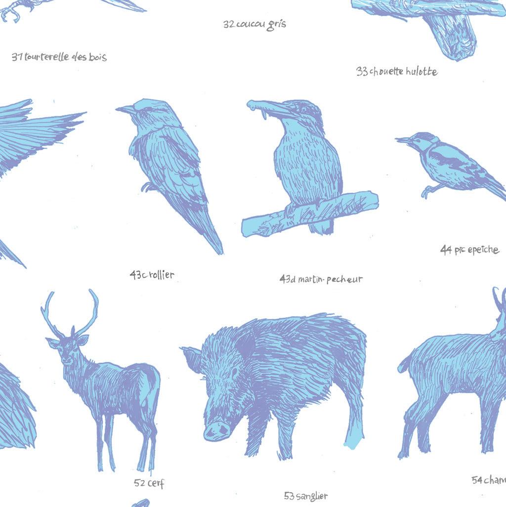 Quand on lui demande, Paatrice dit qu’il sait « parler et dessiner un grand nombre de langues imaginaires. » Il a ici réalisé une série d’illustrations réalistes et délicates, sur un grand poster 40 x 60 cm, imprimé en deux couleurs, en risographie, à l’atelier Quintal.