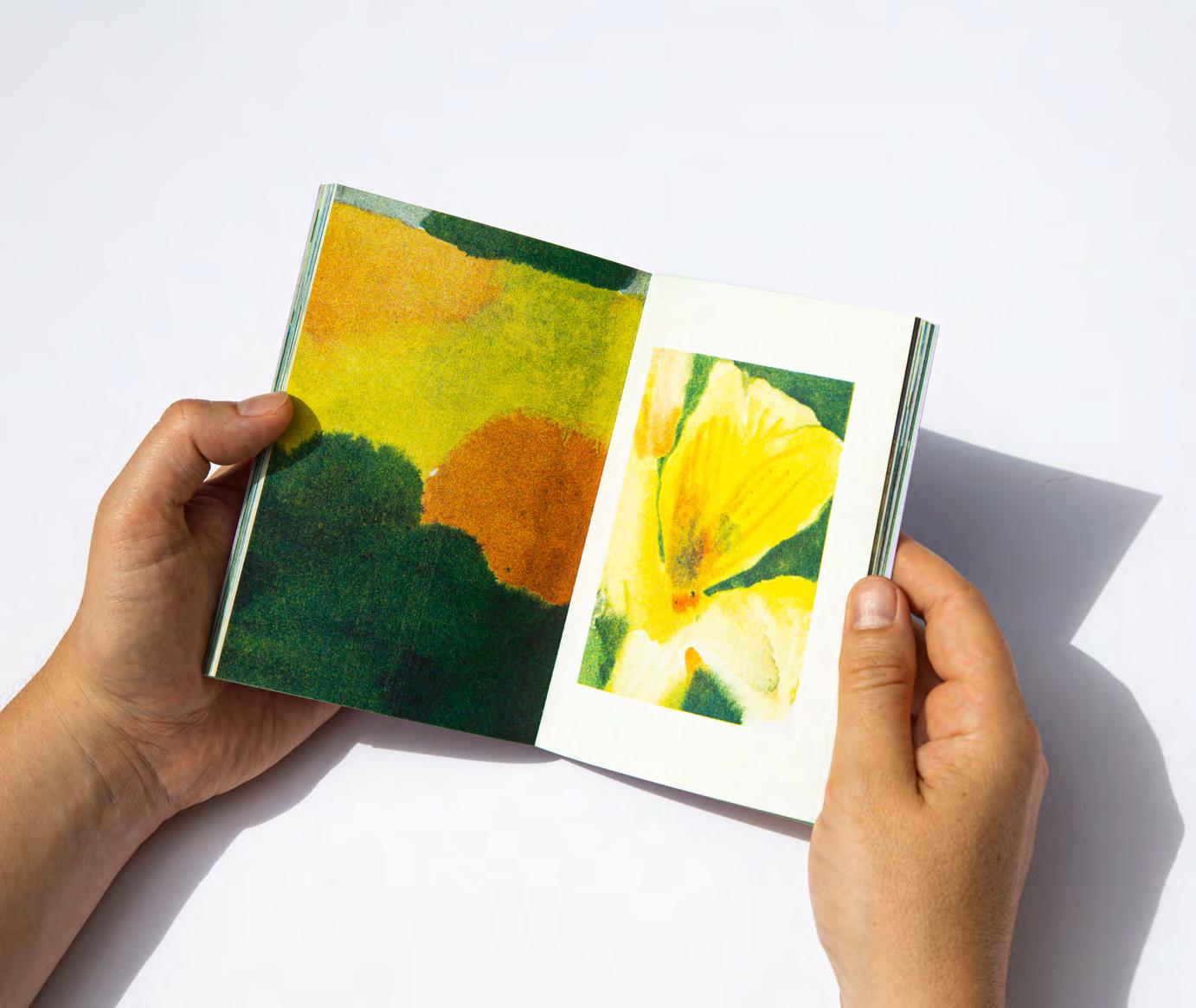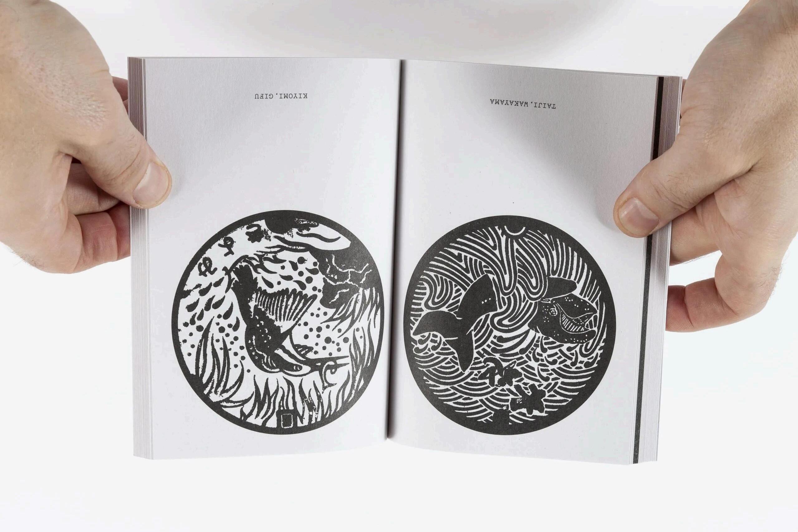 Acceptable press, dans un petit format 17 x 13 cm. Nous en ferons une édition très différente en offset avec un format plus grand de 21 x 29 cm, avec une couverture souple vernie. Le texte traduit sera manuscrit par l’autrice et le graphisme du livre sera travaillé par Jean-Philippe Bretin.