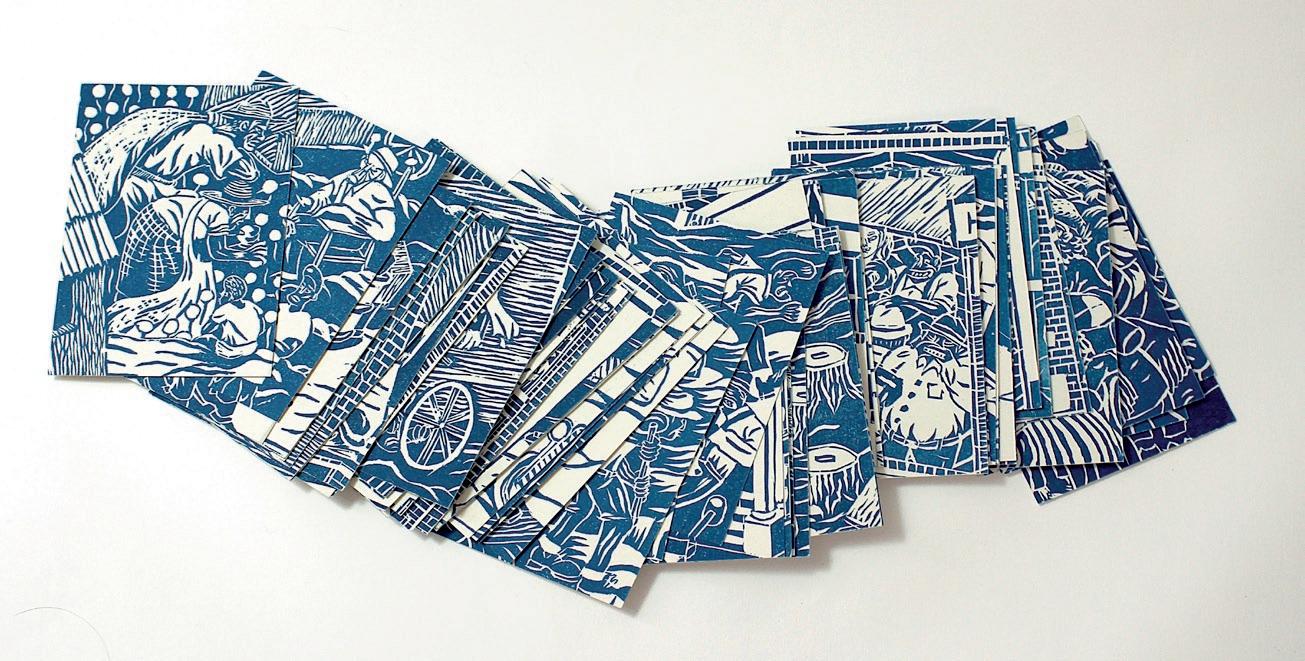 Dans cette boîte se trouvent soixante-dix gravures sur bois originales. Chacune illustre une chanson de blues dont la traduction se trouve au dos ; elles s’assemblent en un grand grand tableau picaresque.