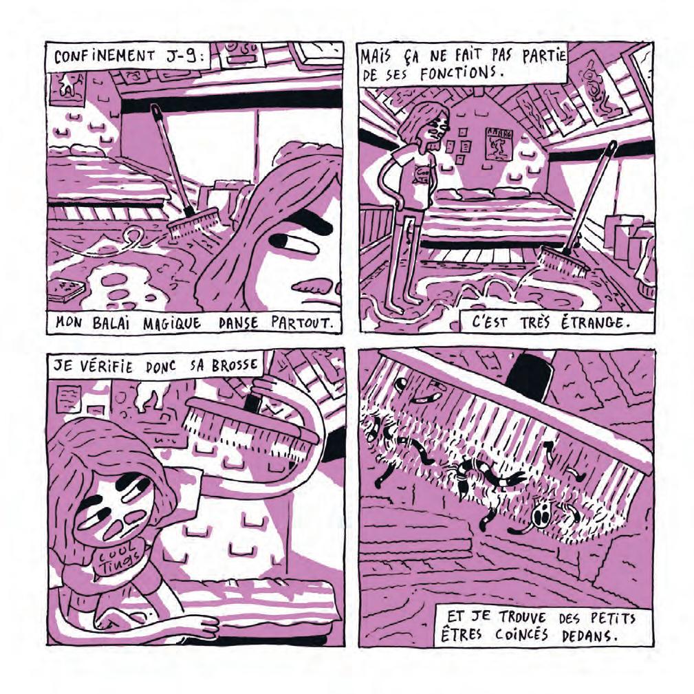 Ne lisez pas cette bande dessinée comme un journal de confinement, tel que vous en avez déjà vu durant les mois de mars et avril 2020. Voyez-la plutôt comme cet inconnu qui s’asseoit à vos côtés dans le train et qui commence à déblatérer un tas de choses insensées.