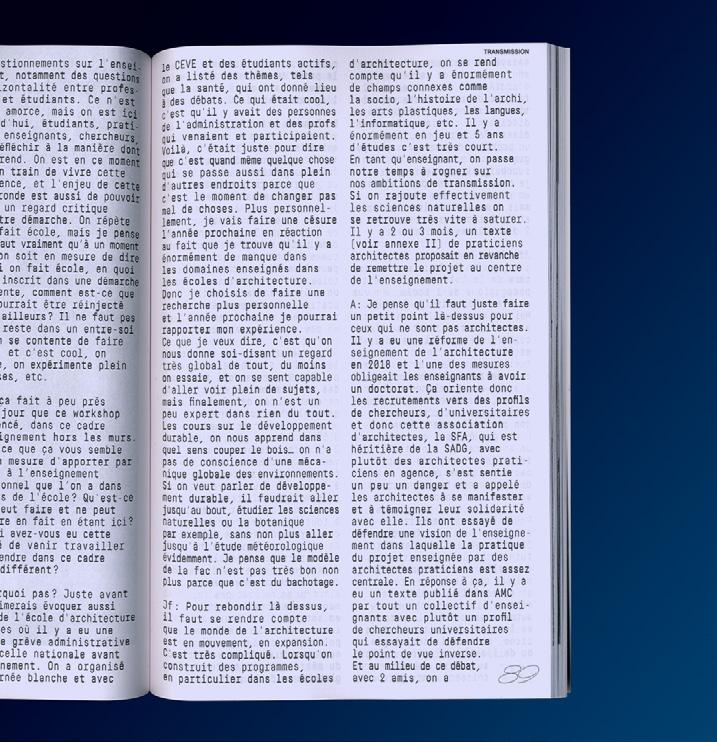 « L’idée de l’archive s’est constituée progres sivement et parallèlement. Il a fallu composer l’ouvrage selon plusieurs logiques : ne pas perdre le principe de mise en débat, repré sentative de l’école zéro, tout en proposant un itinéraire rétrospectif et spatialisé de sa fondation. »