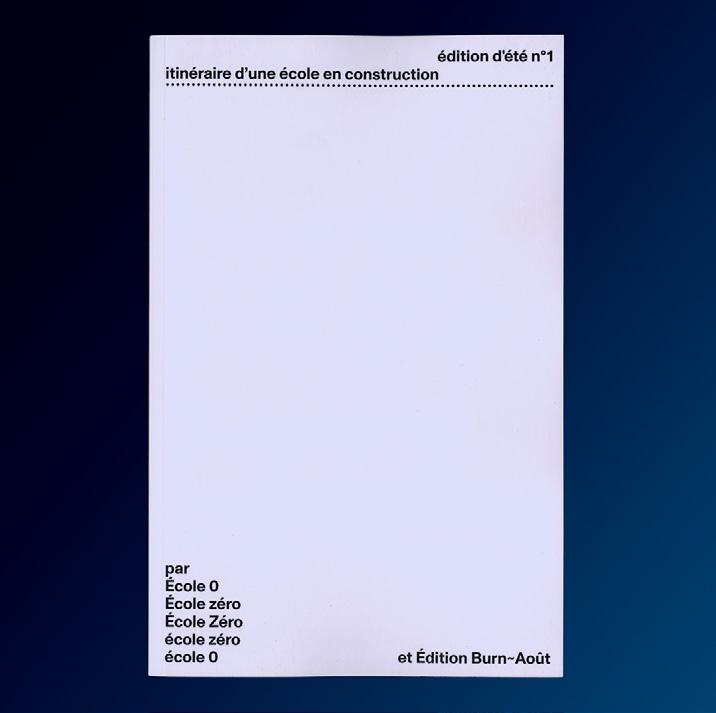 « L’École Zéro est une expérimentation et l’Édi tion d’été en illustre ses fondements. Conçue comme une archive, elle collecte la matière l’ayant constituée et relate les événements qui ont façonné sa construction. Elle explore ce que cela signifie de s’organiser collectivement. Des idées et envies initiales à leur concrétisation sous ses différentes formes : le Workshop Zéro, le Séminaire Zéro, l’École Zéro, la création de l’association, et enfin, l’objet qui nous intéresse ici : l’Édition d’été n°1 de l’école zéro. Elle explore ce que cela signifie de s’organiser collective ment en son sein et autour. »