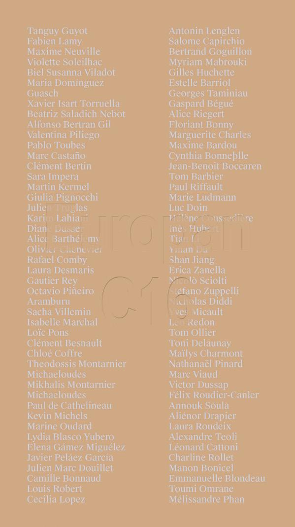 Marquée à chaud à vide sur Groccer Kraft 270g + impression en pantone métallique des 136 noms des jeunes concepteur.rice.s sélectionné.e.s en France
