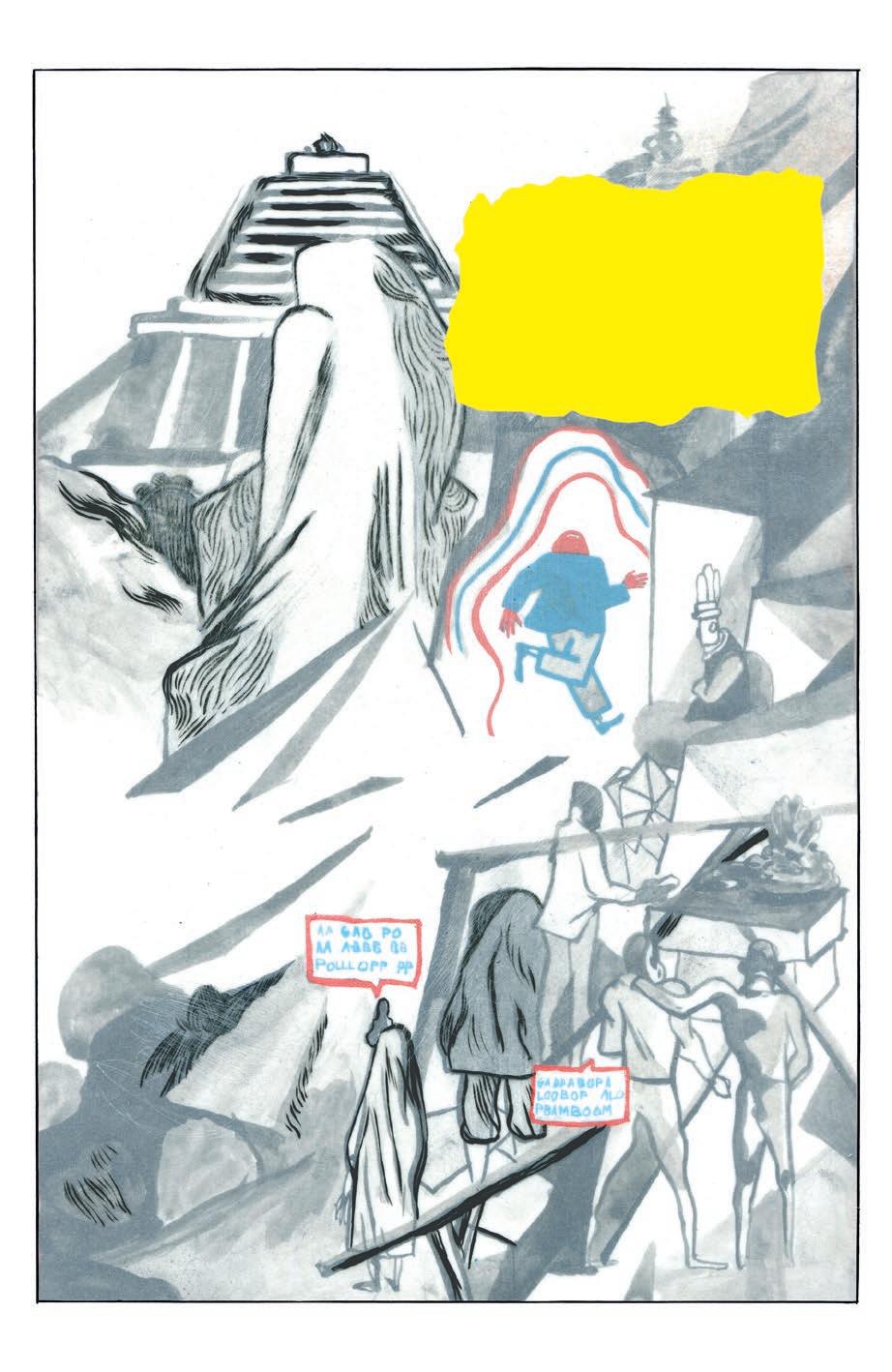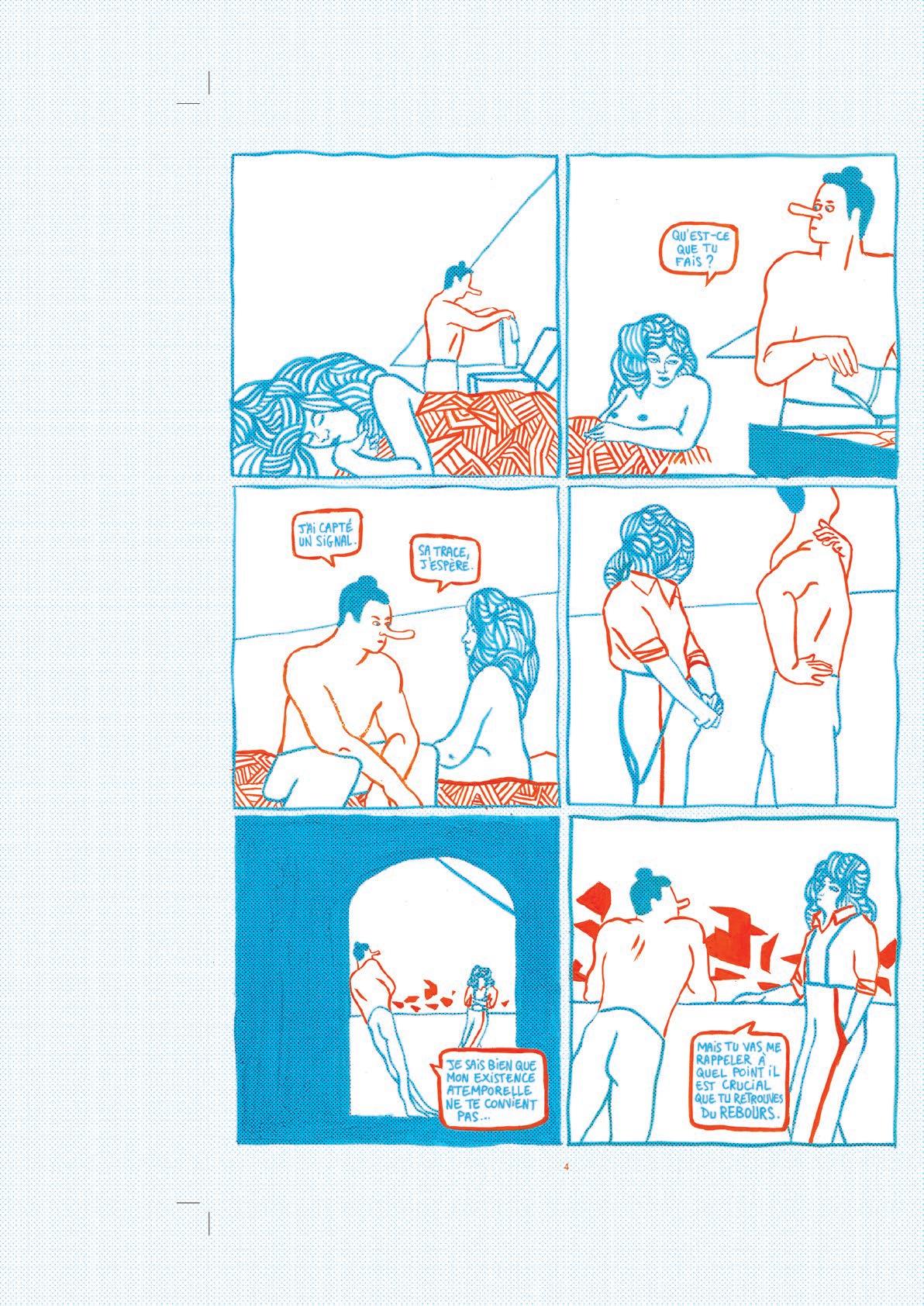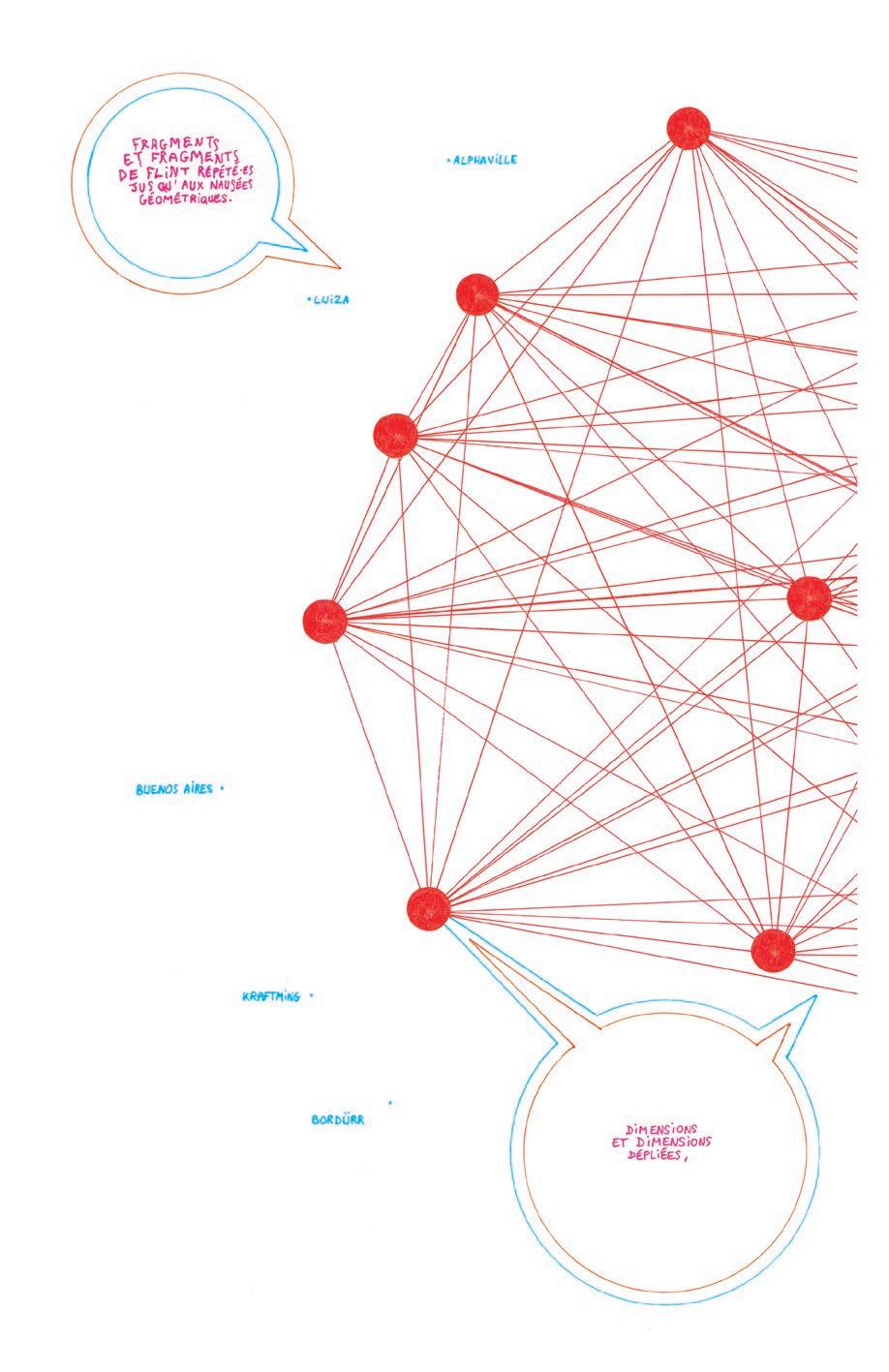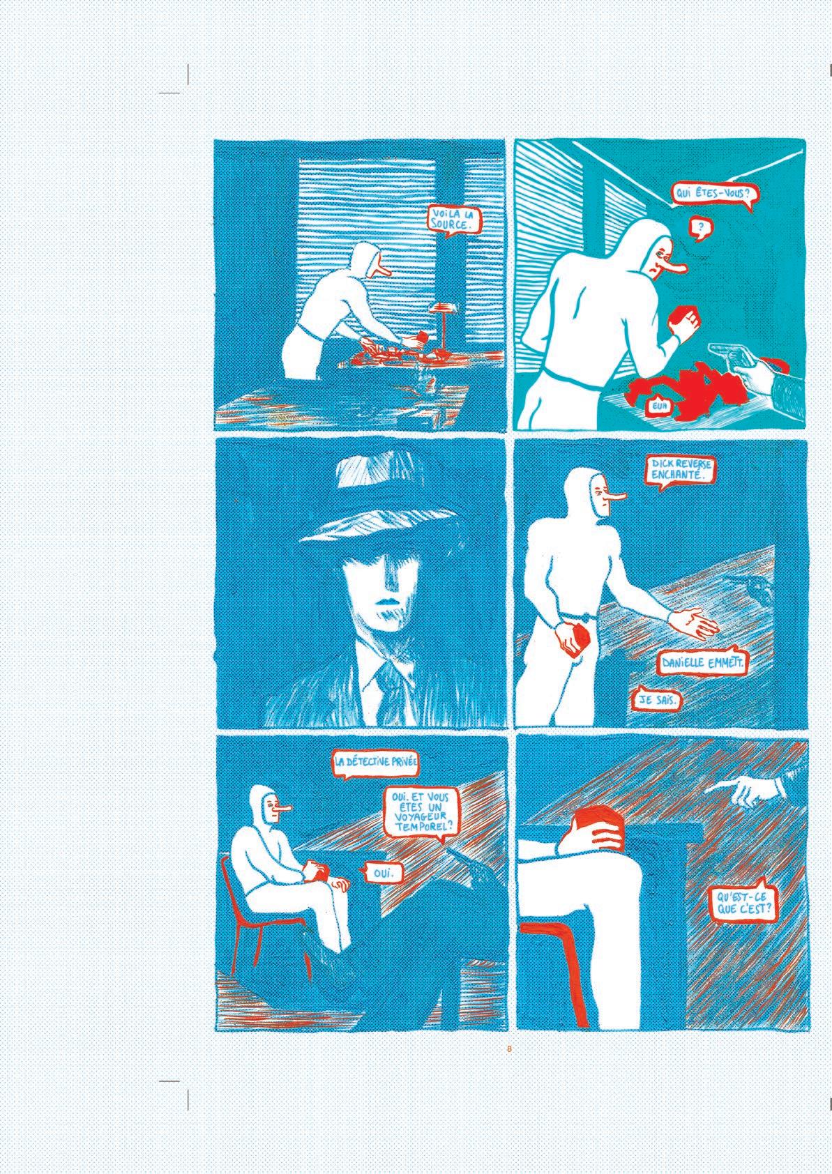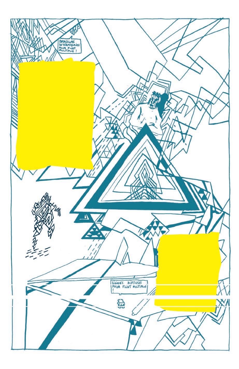 À la fin de chaque morceau d'histoire un choix est proposé. Va-t-on suivre tel personnage, ou bien s'intéresser à telle question ? À première vue, ce que crée l'auteur n'est pas une trame linéaire dans laquelle il a tout décidé et où il dirige le lecteur. Ce dernier va créer un montage unique, réécrire l'ordre des séquences à sa guise. En coulisse pourtant, Yannis La Macchia fabrique une architecture subtile, invisible, dans laquelle chaque décision conditionnera des routes de lecture. On suivra un ou plusieurs personnages et on en abandonnera peut-être d'autres. L'auteur nous interroge. Jusqu'où devenonsnous maîtres de ce récit ? Et jusqu'où le créateur de cet ouvrage morcelé, duquel il semble vouloir nous donner le volant, brouille-t-il les pistes de l'autorité de l'auteur ?