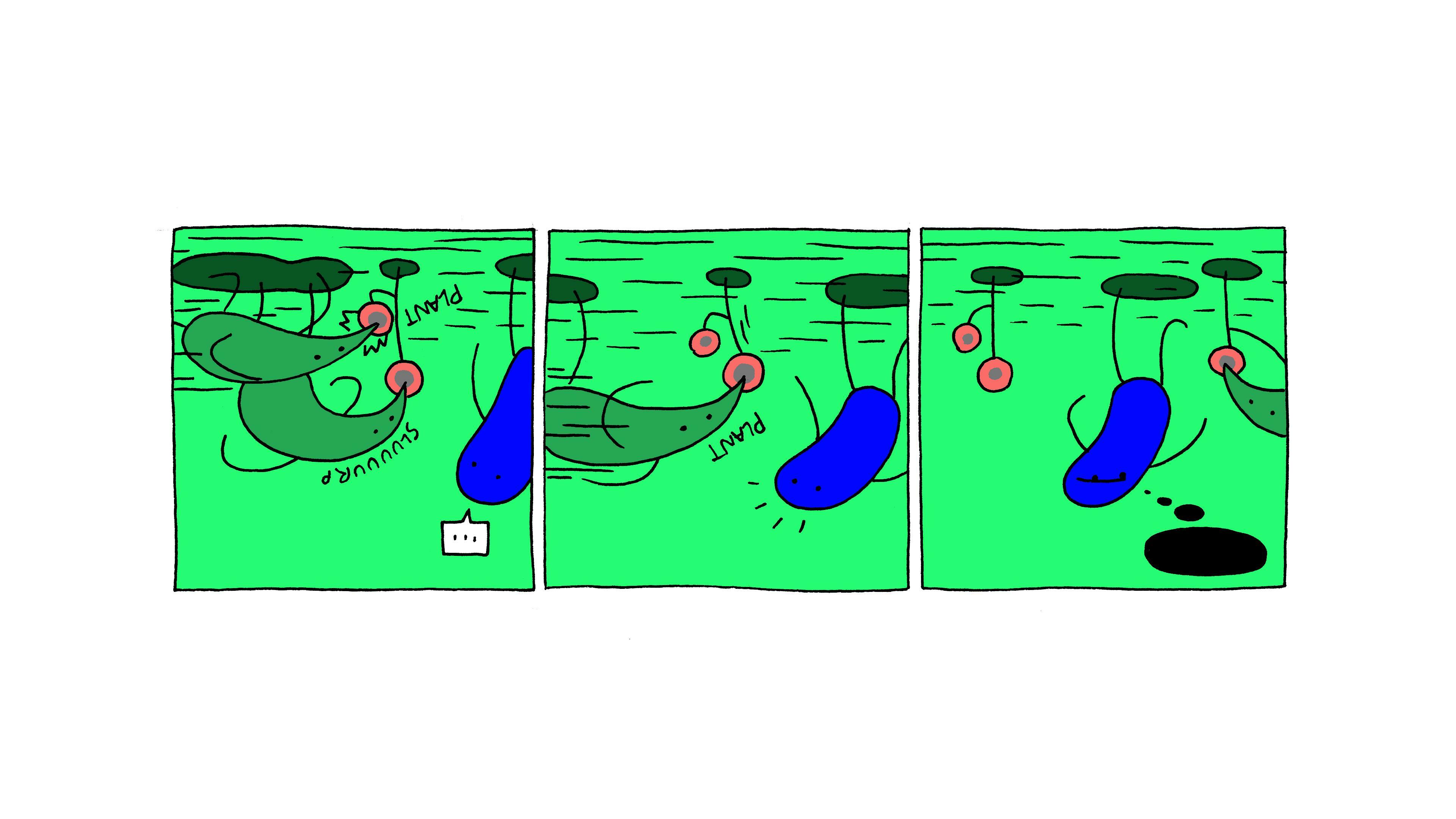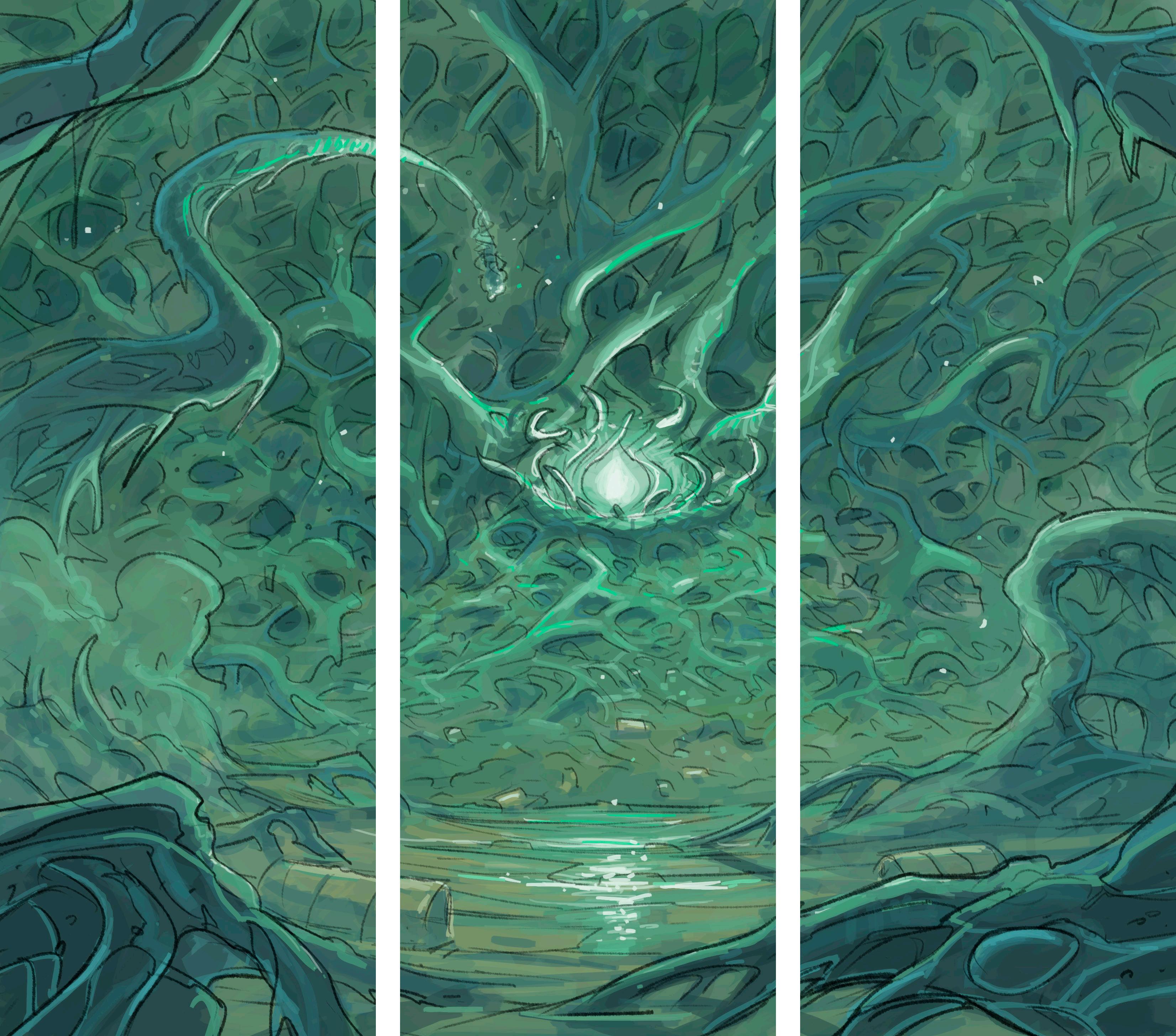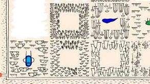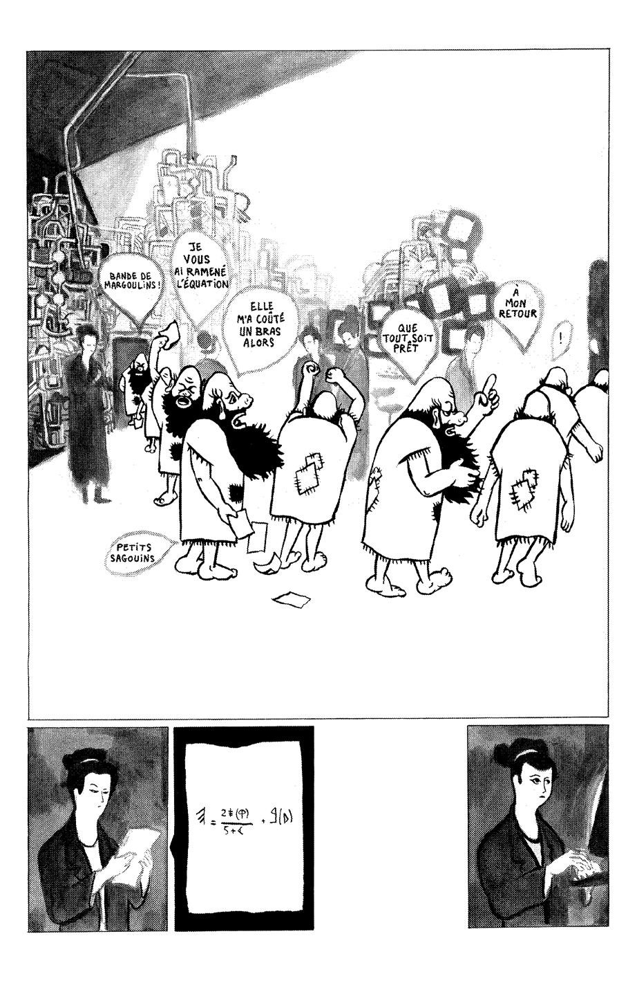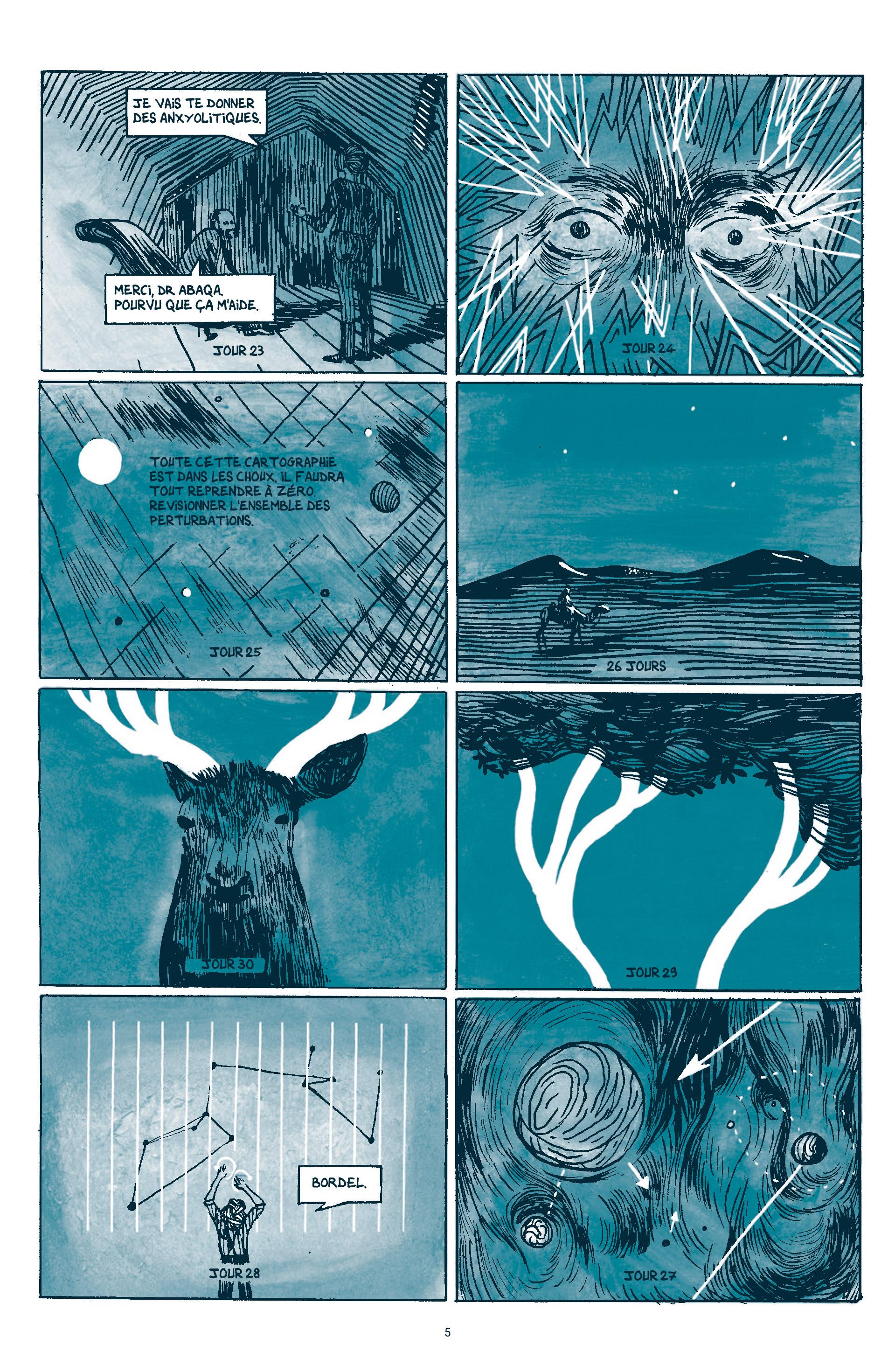 L’univers unicellulaire d’Alex Chauvel est aussi minimaliste que foisonnant. Dans ce monde fait de toutes petites choses et avec une économie de moyens remarquable, l’auteur nous emmène dans une contrée vivante et pleine de surprises. Une carte évolutive du microcosme permet d’aller voir ce qui se passe dans différents lieux et chez différentes espèces. Au fur et à mesure de notre progression dans les trois chapitres de cette histoire, la carte se dévoile, se transforme, laissant apparaître les modifications du territoire et les déplacements de nos héros.