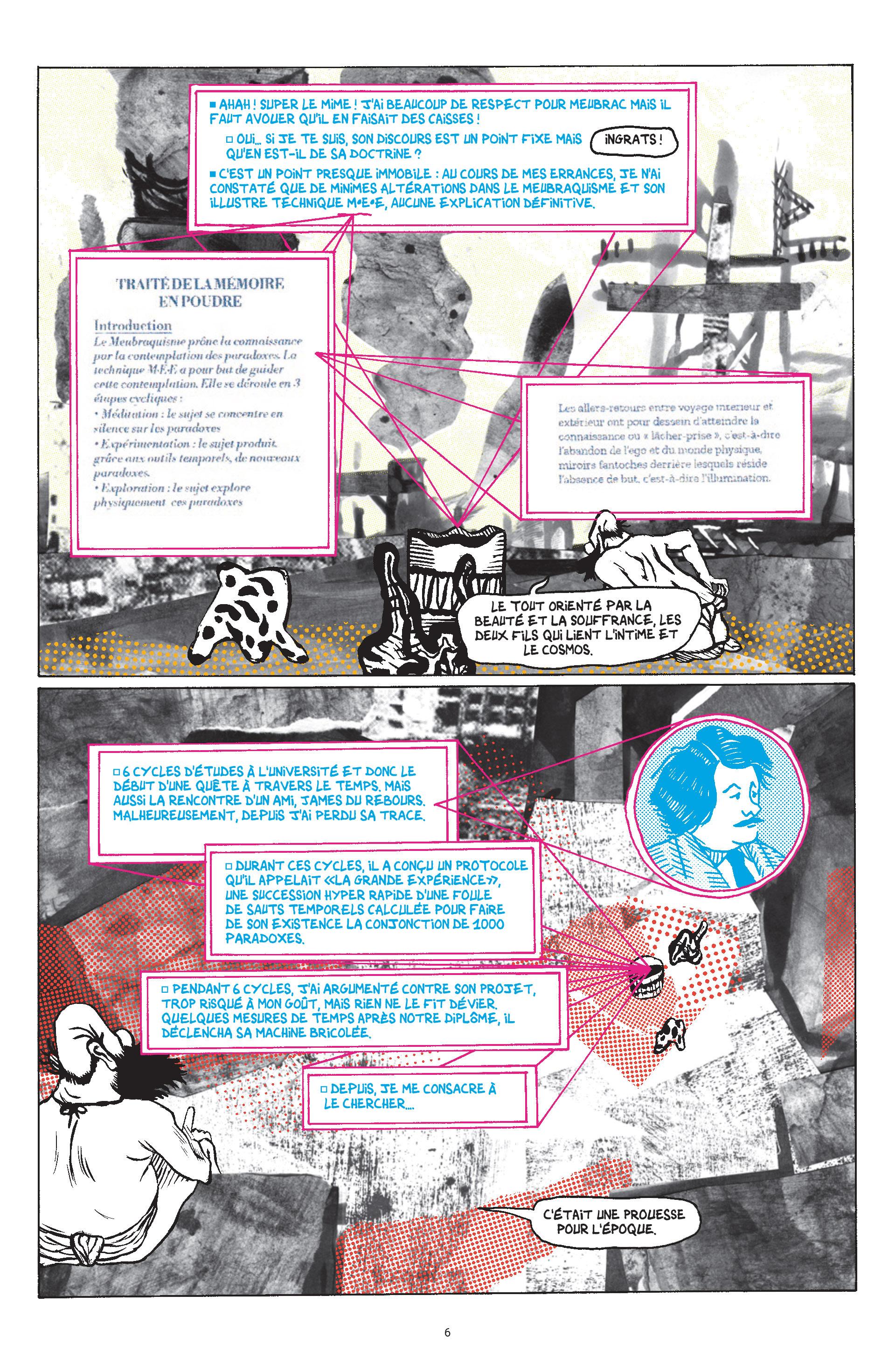 Meddle, le premier chapitre, nous projette dans une ville lointaine, Hadagoville, où le Dr Meubrac dirige, entre deux déambulations, le programme clandestin de fabrication de la machine temporelle. Pour le premier essai, il s’est dégoté un cobaye du nom de Flint sorte de renégat de salon, aussi fat que crypto-libéral. Mais les choses ne sont pas si simples