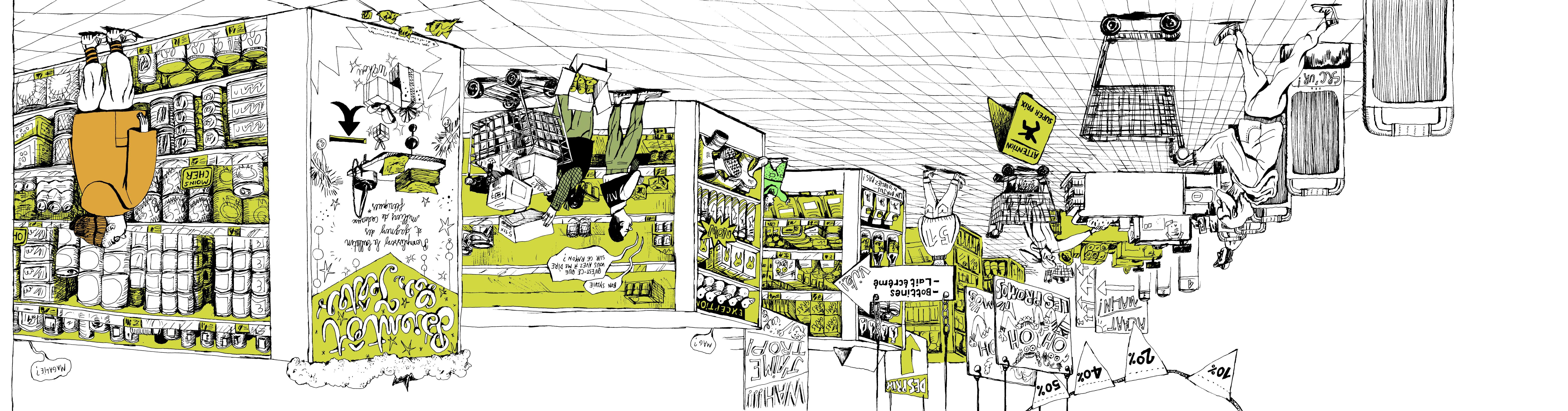 Le supermarché, ce labyrinthe saturé de produits multicolores, peut aussi devenir un incroyable lieu de vie. Ce postulat, qui pourrait très bien inspirer un slogan destiné à rendre attractif l’un de ces hangars éclairés au néon, est repris ici sur un ton légèrement dissonant. Car la vie qui grouille entre les rayons et le carrelage glacé du lieu de travail de Sylvie est un peu débordante : homards mal ficelés et cultures bactériennes, management feng shui et salariés sous pression... Dans les rayons du supermarché, on ne voit pas que des produits. On y observe aussi des choses qui n’étaient pas faites pour être vues.