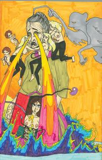 Son approche spontanée met en scène un imaginaire très personnel, sorte de dégorgement graphique d’une culture hybride traversée de figures archétypales, magnifiées ou déformées selon la narration choisie.