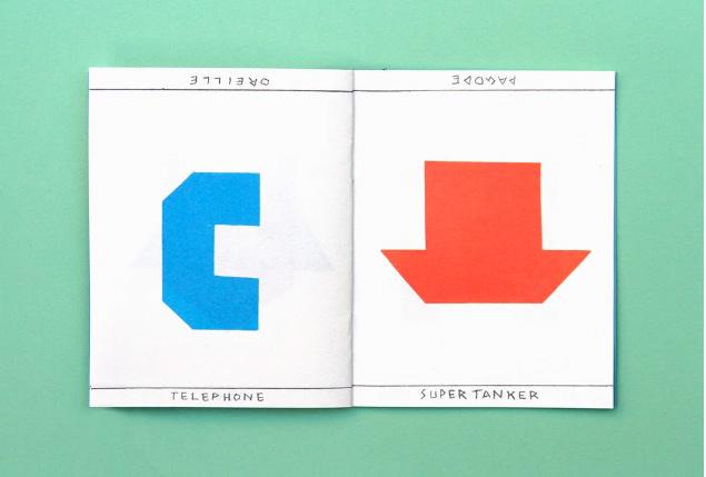 Tout petit livre à destination des enfants, Élémentaire se lit dans les deux sens, à l’endroit et à l’envers. Sur les 20 pages se succèdent des formes simples qui sont une chose quand on les regarde dans un sens, et une autre quand on retourne le livret !