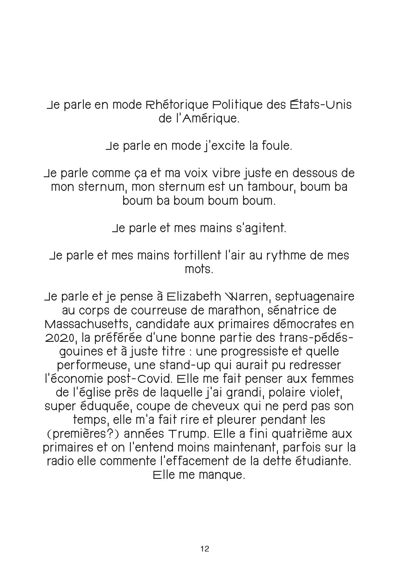 Sa volonté de créer des ponts vers l’autre se manifeste dans l’architecture du manuscrit, un collage qui forge de scène en scène un véritable réseau de sens. Sur papier, c’est une tentative de raccommoder les pièces rapportées de nos vies éclatées : des faits réels, des pensées, de la fiction, de la poésie, des formes de communication, des images, du vide. On s’immerge par bribes dans la pratique de La folle Avoine et, si l’on accepte de l'accompagner, l’amitié devient possible et le voyage peut commencer.